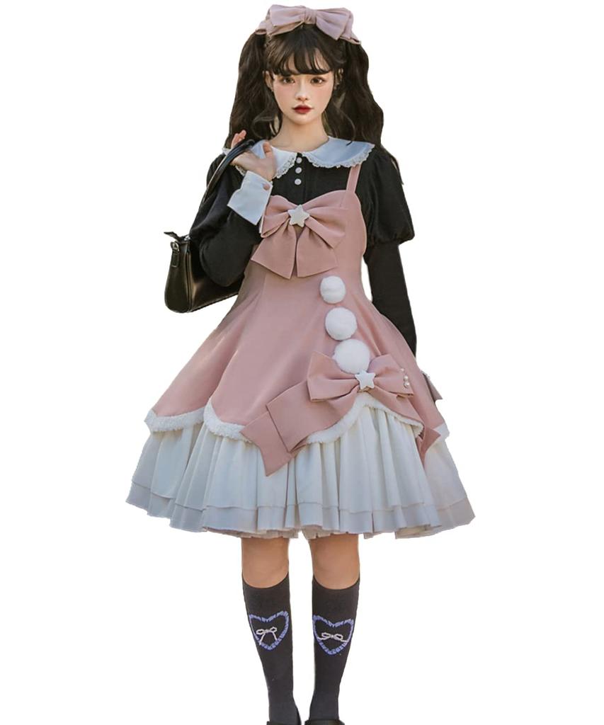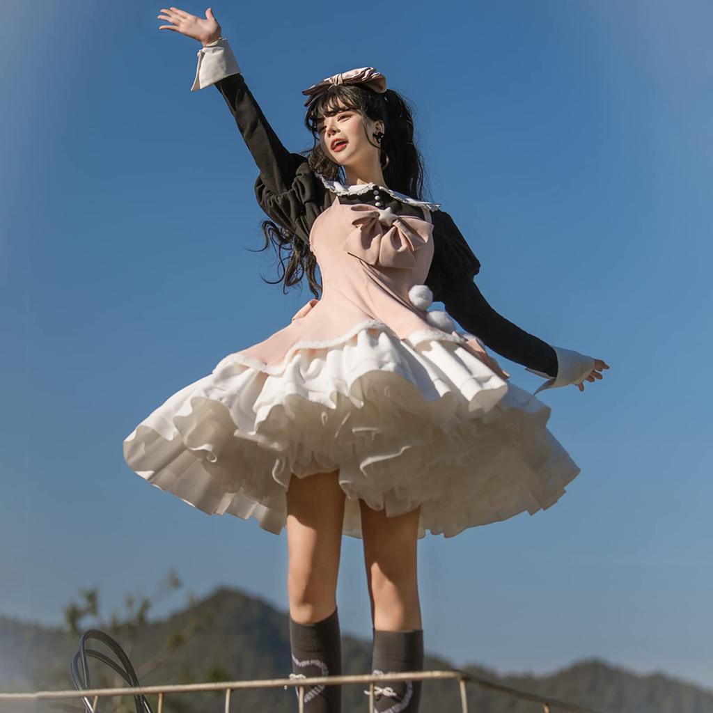 [Milky Time] Набор из 3 предметов: Платье Лолиты, Юбка-сарафан и Бретелька с подплечником с Блузкой (Розовый x Черный)