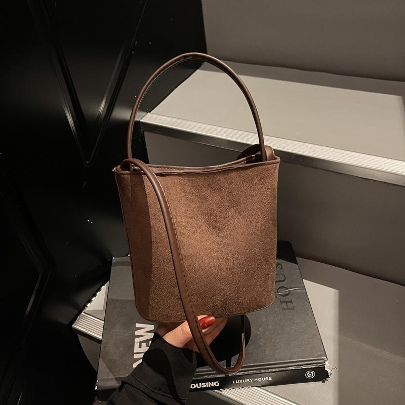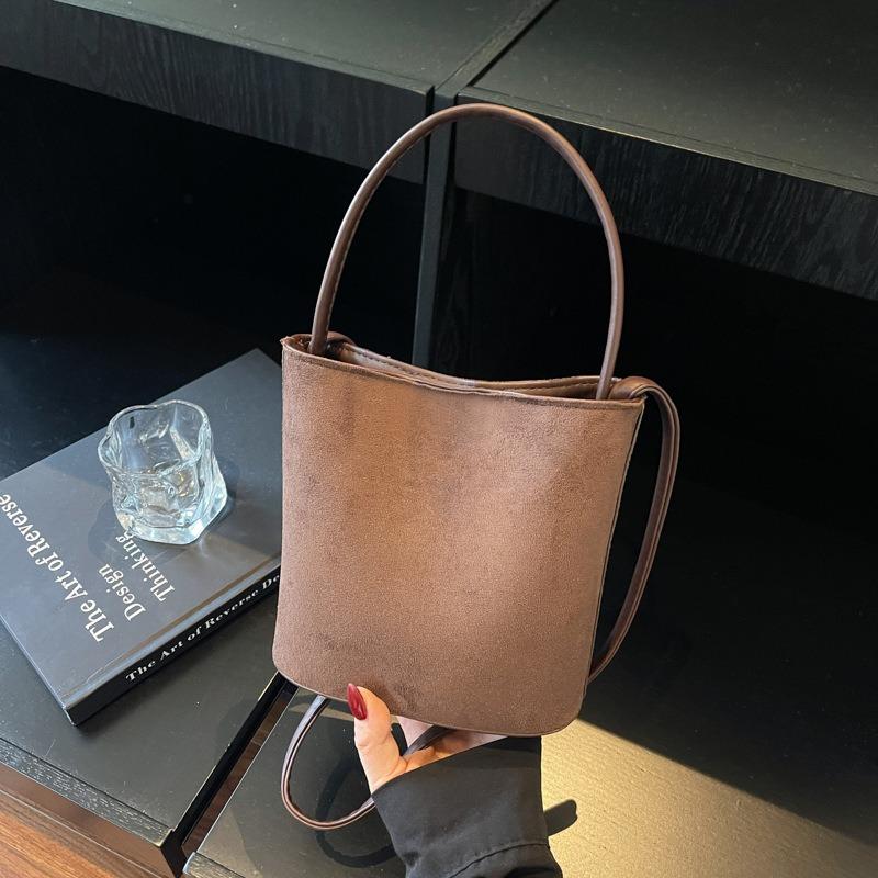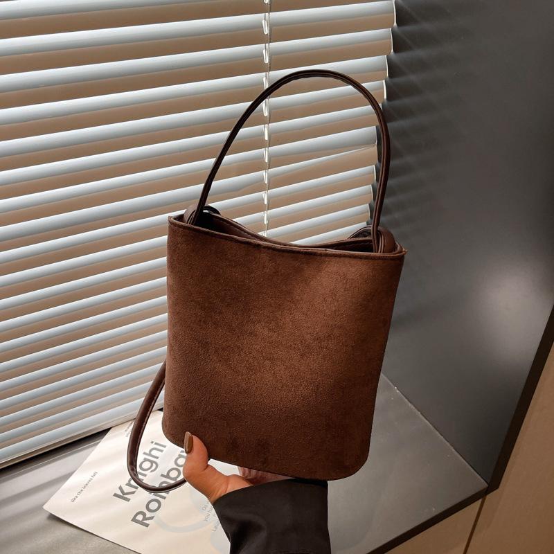 Осень и зима новая нишевая матовая женская сумка на плечо большой вместимости простая и универсальная высококлассная сумка-ведро