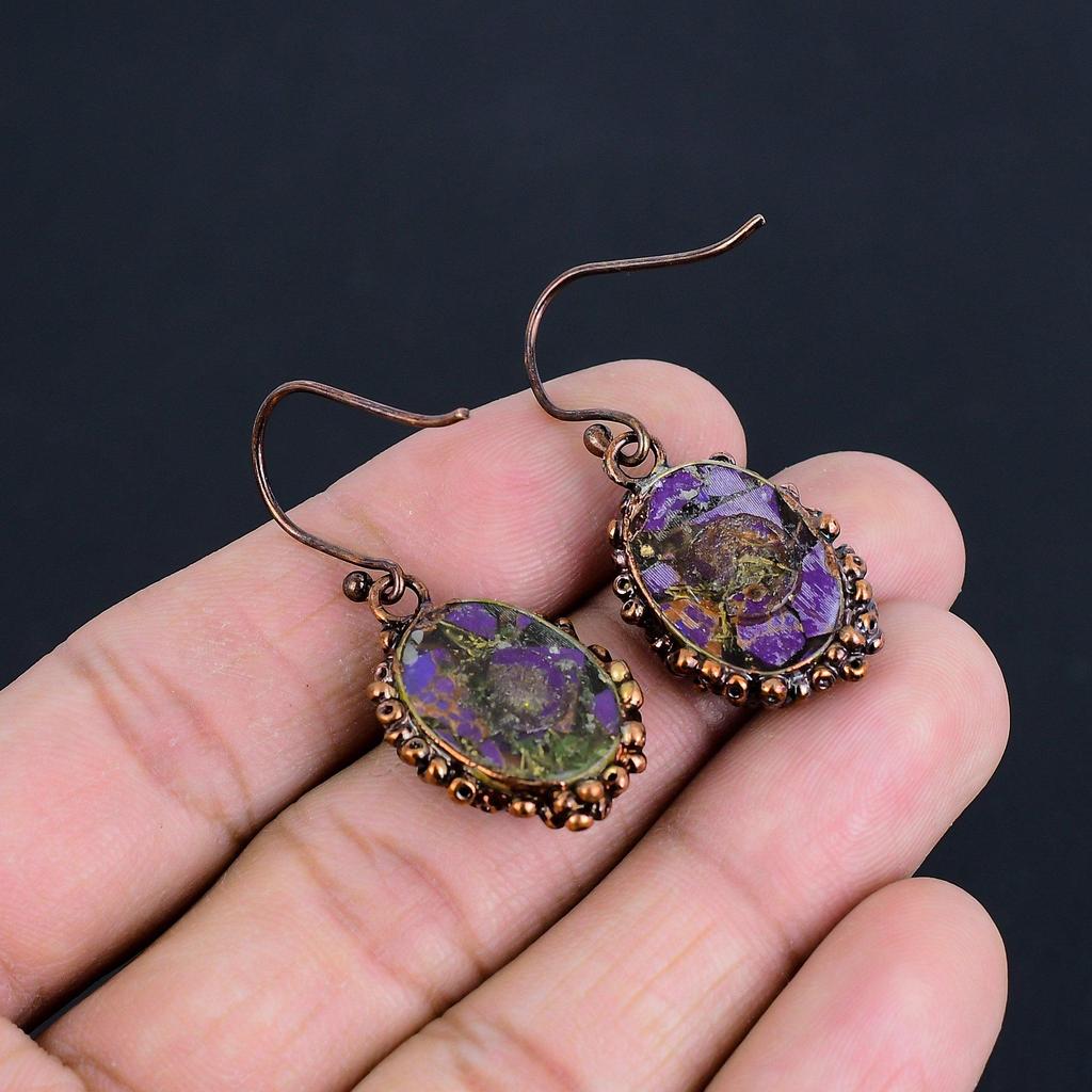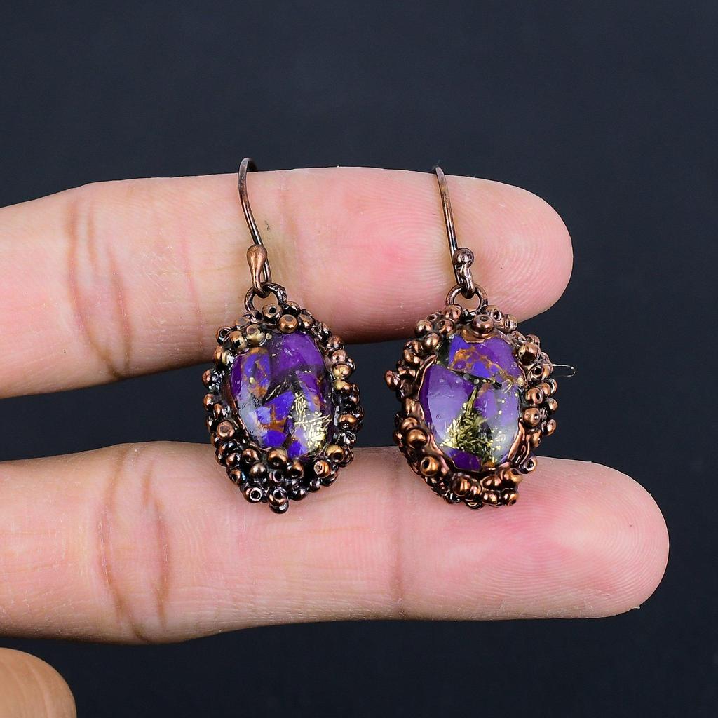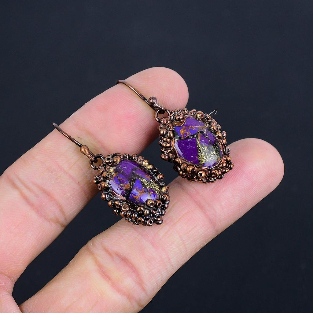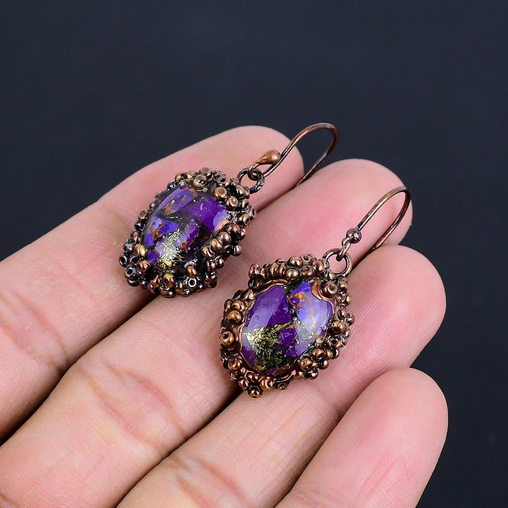 Серьги из фиолетовой медной бирюзы, Ювелирные изделия из меди методом гальванопластики, Серьги с драгоценными камнями, Подарок для нее, Изящные украшения ручной работы