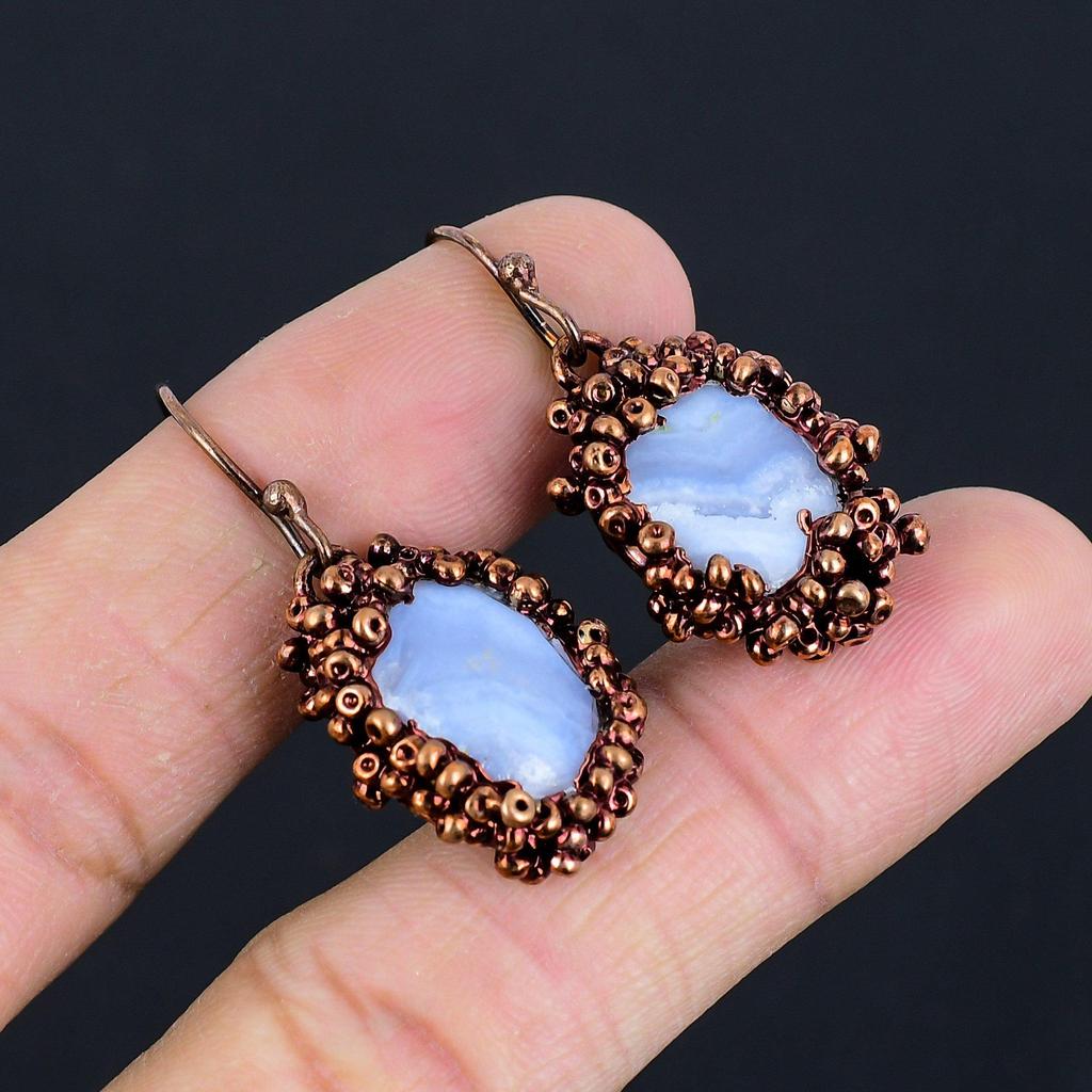 Серьги из голубого кружевного агата ручной работы, серьги из меди, гальванизированные электролитическим способом, антикварные украшения, серьги для подарка на помолвку