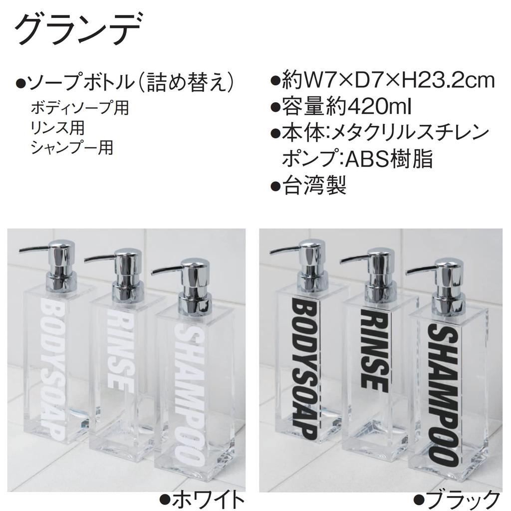 Senko Grande Body Soap Bottle 420ml Large 64546 Dispenser, Capacity, Black, Font,