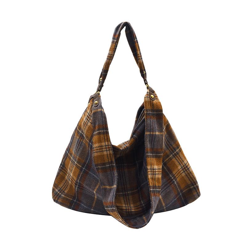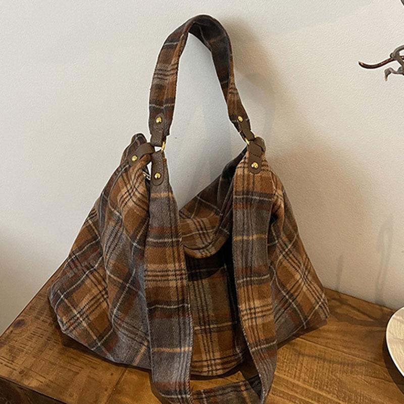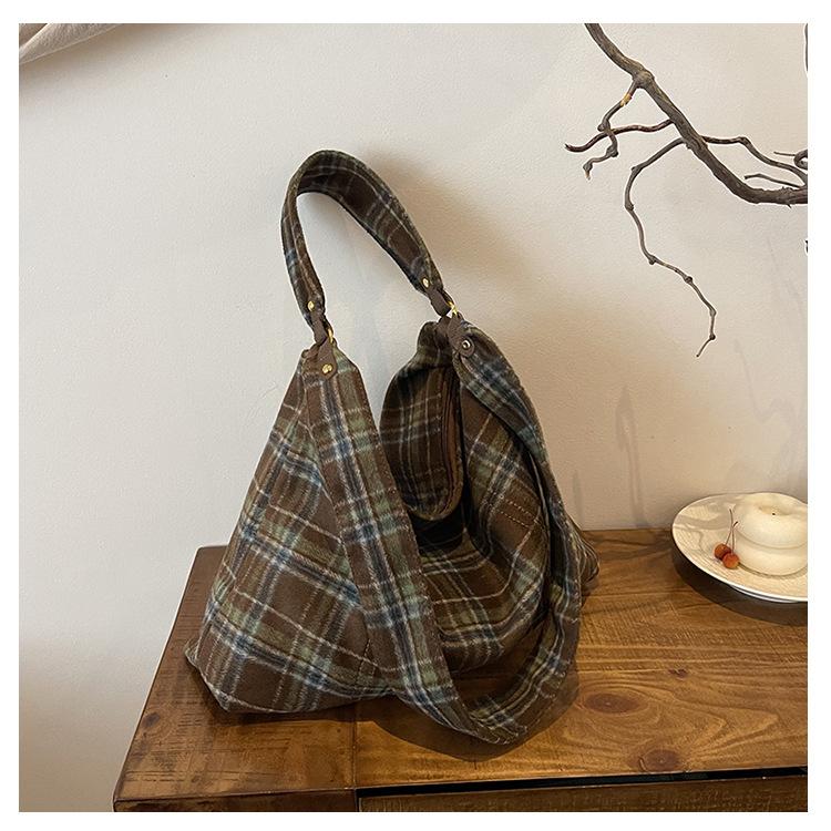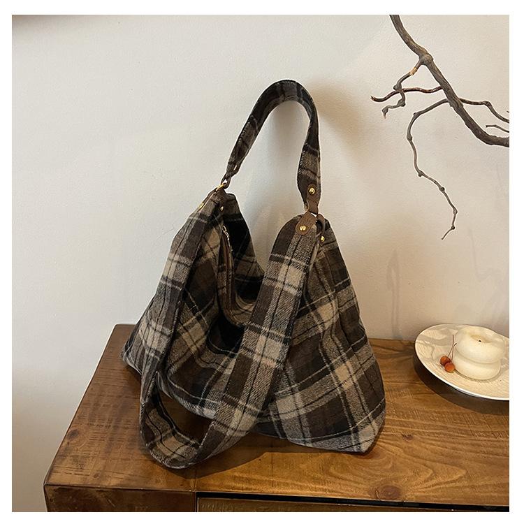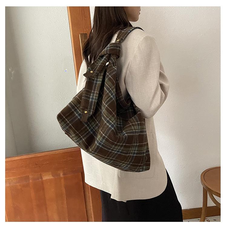 Шерстяная клетчатая сумка женская большой вместимости новая осенне-зимняя универсальная на плечо сумка-мессенджер повседневная