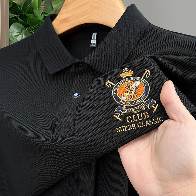 Летняя футболка-поло с отложным воротником, короткий рукав, чистый хлопок, мужская, с вышивкой, короткая, для бизнеса, среднего и молодого возраста, топы