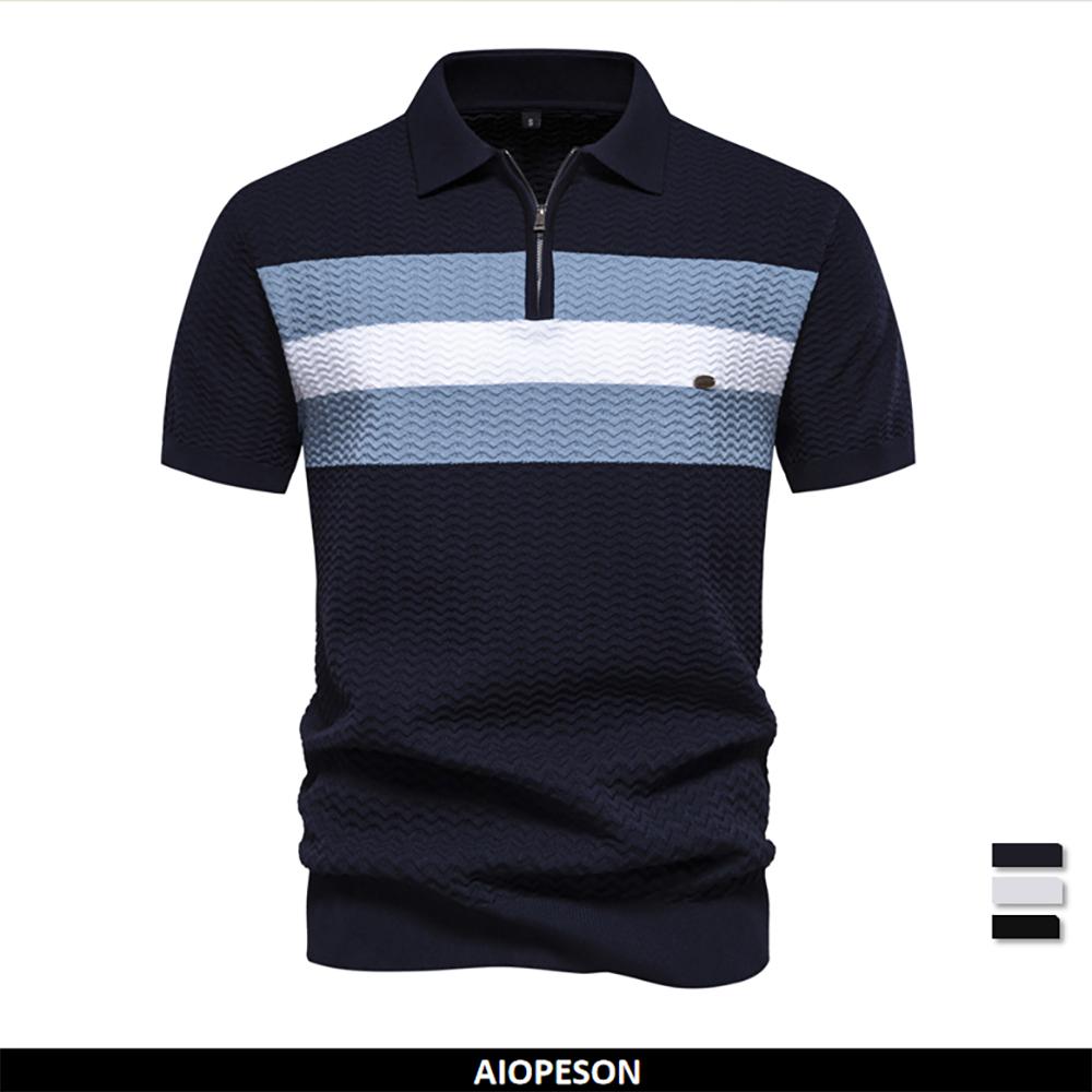 Новая летняя текстурированная трикотажная рубашка поло в рубчик для мужчин, с коротким рукавом, дышащая и прохладная, мужские рубашки поло — купить товар онлайн с бесплатной доставкой по всему миру!