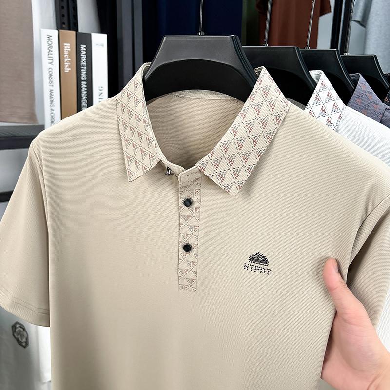 Light Luxury Summer Business and Leisure Dad's Dress Flip Collar Ice Silk Half Sleeve Printed Bottom Polo Shirt