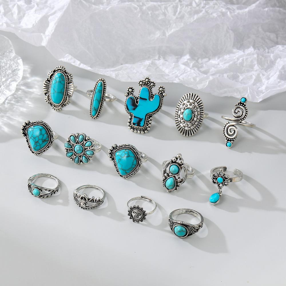 Винтажный богемный бирюзовый кактус гравированный набор из 14 предметов кольцо женское