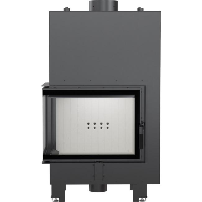 В топке установлена тройная воздушная система камеры сгорания.. Первичный воздух, облегчающий воспламенение древесины, подается по всей ширине топочной вставки, на которой и происходит весь процесс горения.. Вставка без колосника обеспечивает так называемый феномен дожигания золы.. Вторичный воздух, обеспечивающий экономичное и экологическое горение, подается через систему отверстий, расположенных в задней стенке.
