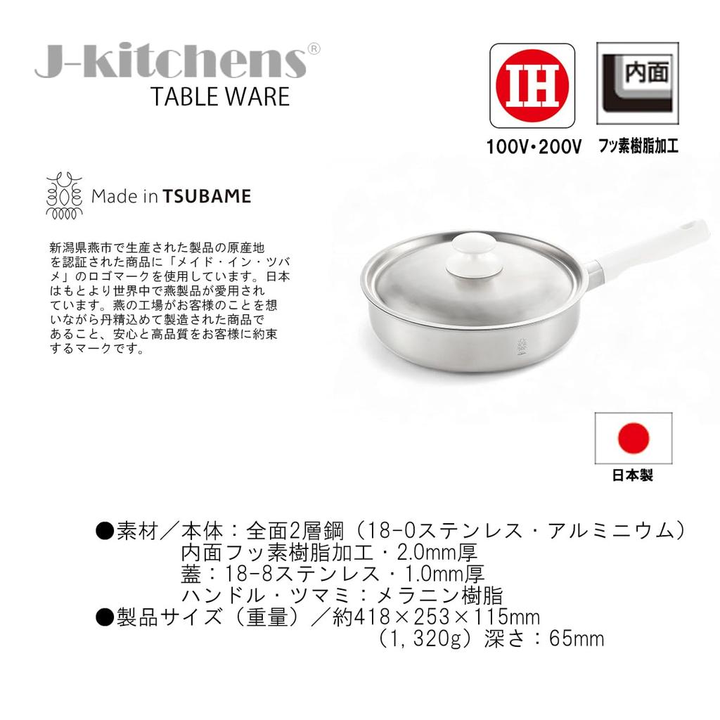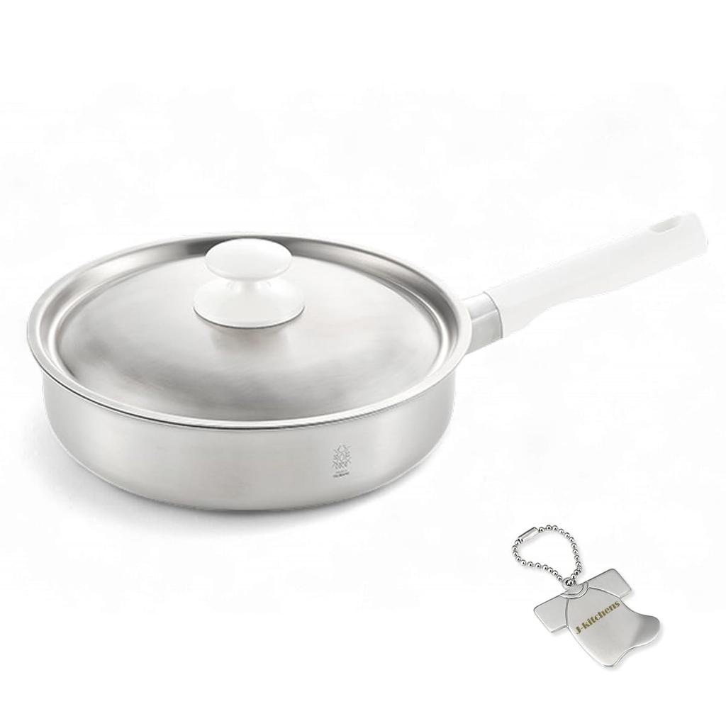 20cm Stainless Steel Frying Pan with Made in Includes Original Tag J-kitchens Double-Layered Lid, Rust-Resistant, Non-Stick, Gas/Induction Compatible,