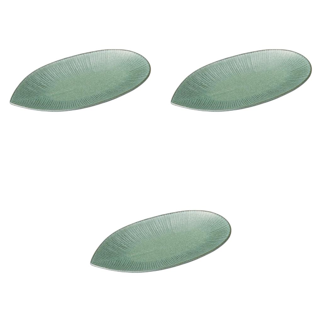 Set of 3 Moa Green 21cm Long Medium x 11 x Irregular Shape Ceramic Setomonohonpo Kiln-Change Plates, [21 2cm] Plates,