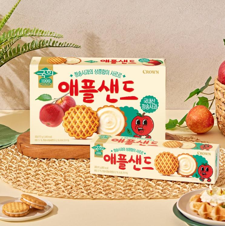 CROWN Гукхи Яблочный Сэндвич 272г – Хрустящая и Фруктовая Корейская Бисквитная Закуска