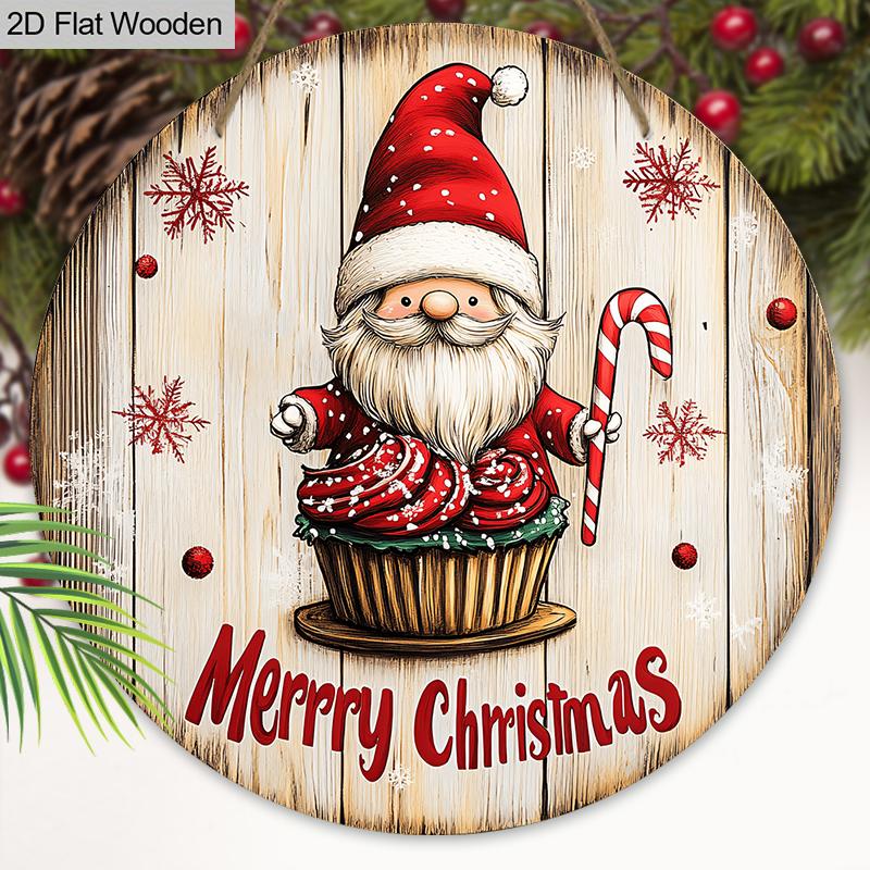 С Рождеством Деревянная Табличка с Очаровательным Узором Гнома - Круглая Табличка Navidad для Входной Двери, Настенный Декор - Идеальное Рождественское Украшение