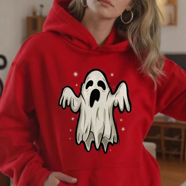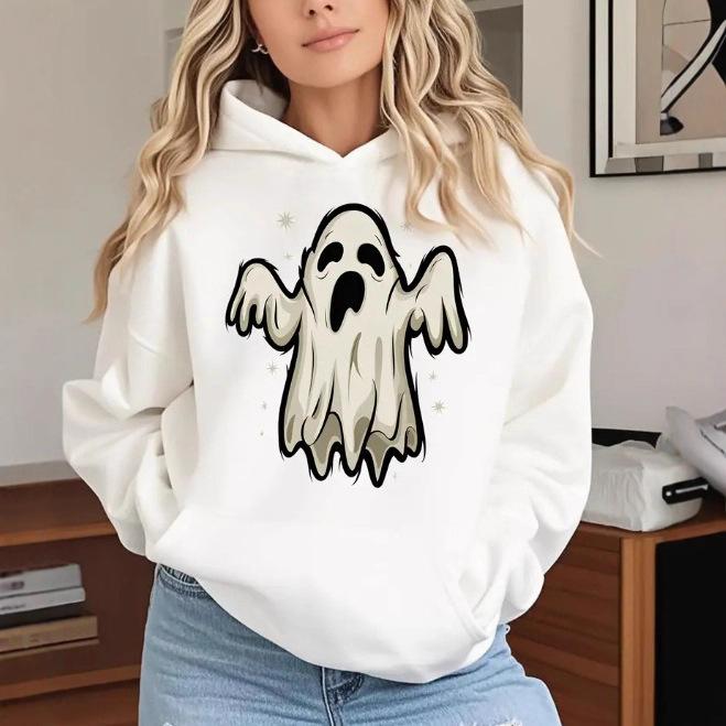 Женские весенне-осенние повседневные худи с капюшоном и длинными рукавами, с большим карманом, с принтом призрака на Хэллоуин, пуловер, толстовка