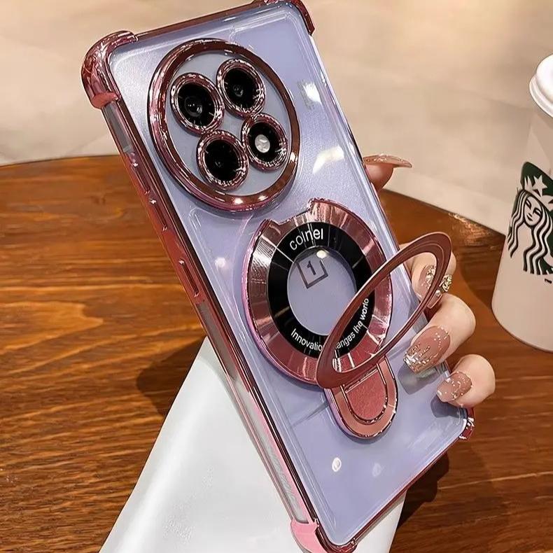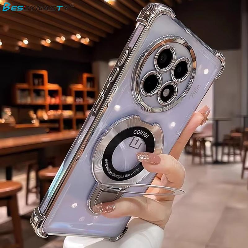 Чехол для OnePlus 13 13R ACE 5 Pro Подушка безопасности Ультрапрозрачный Гальванизированный Магнитный держатель Чехол для OnePlus 13 Противоударный чехол для телефона