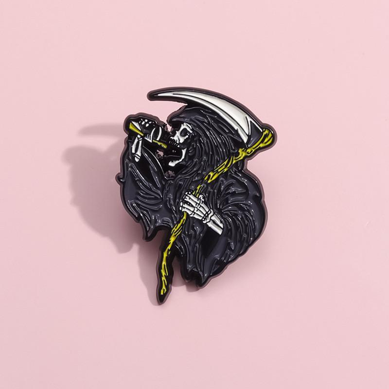 Привлекательный дизайн: Эта брошь отличается уникальным мультяшным дизайном жнеца-черепа, который выделяется, что делает ее обязательным аксессуаром для Хэллоуина и не только.