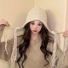 Осенне-зимняя шапка с кисточкой из шерсти, милая шапка для защиты ушей, женская корейская версия, универсальная вязаная шапка, сладкая теплая шапка ручной работы