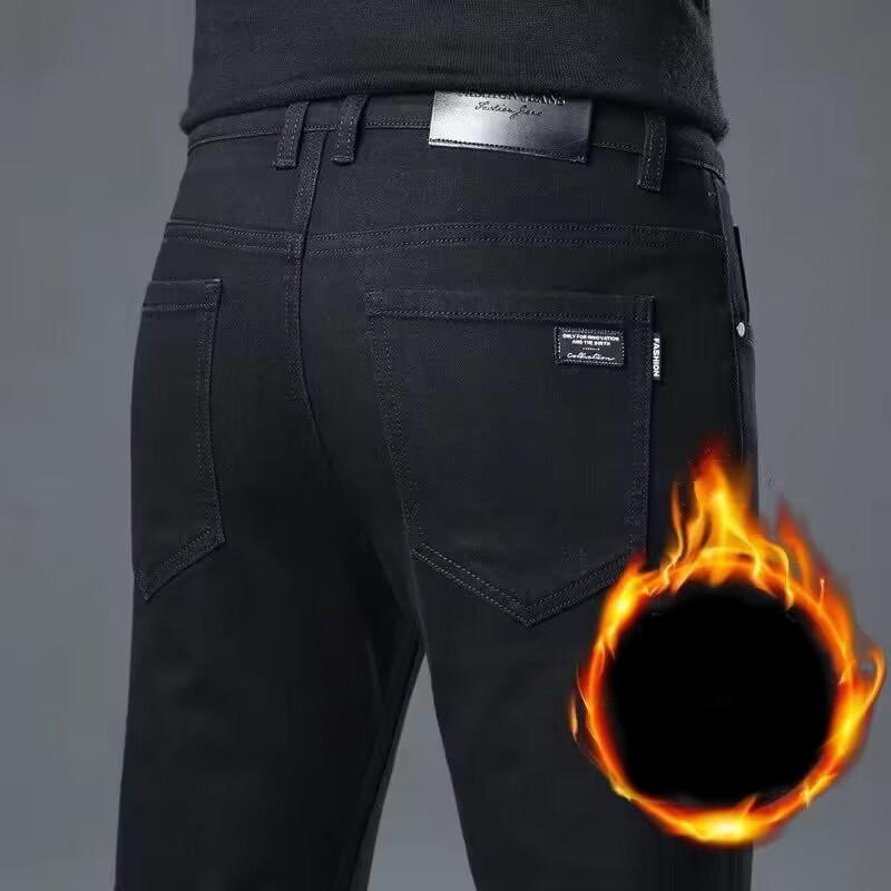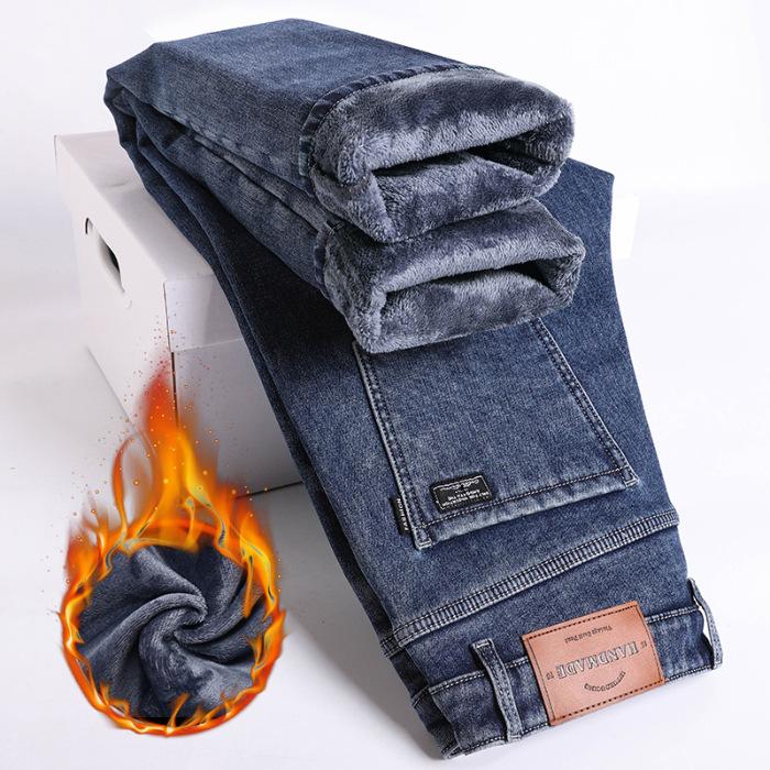 Зимние флисовые толстые теплые джинсы мужские облегающие прямые эластичные джинсовые брюки повседневная мужская одежда модные плюшевые брюки