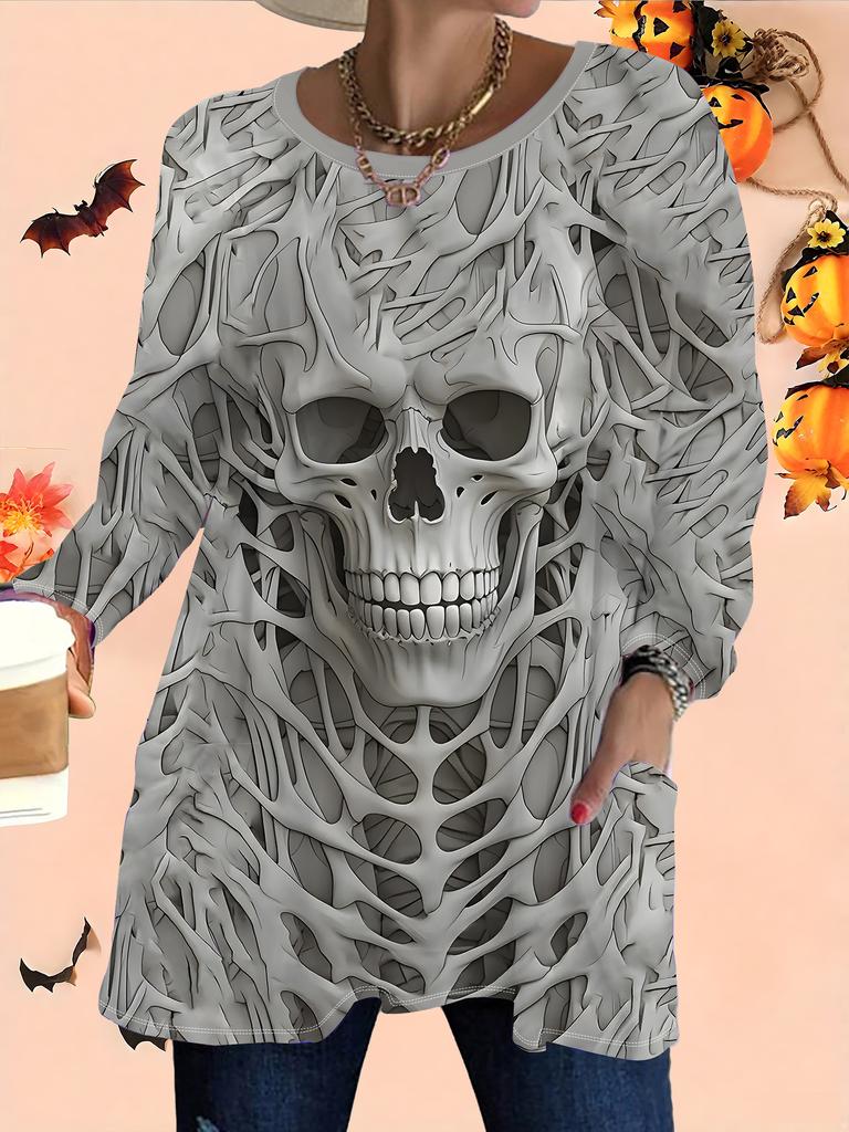 2025 Осень Зима Новые Женские Топы Большого Размера, Модные Футболки с 3D-принтом на Хэллоуин с Круглым Вырезом и Длинным Рукавом