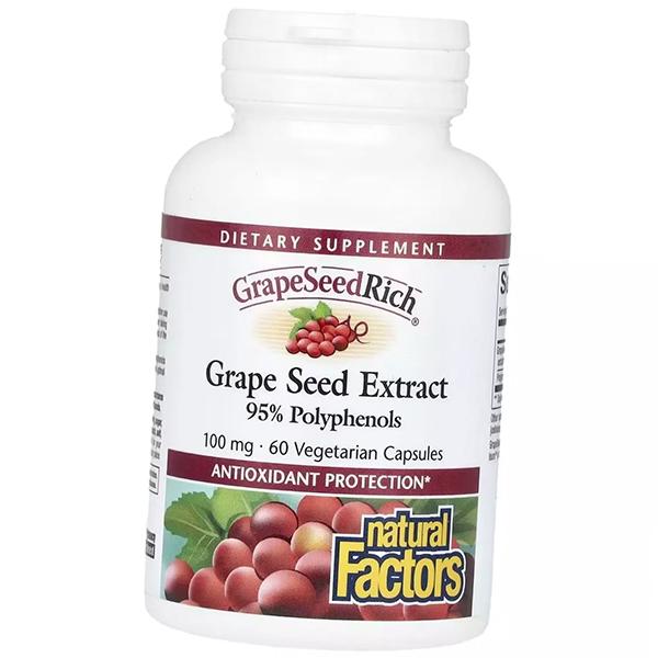 Пищевая добавка для здоров'я та спорту GrapeSeedRich Grape Seed Extract 100 от производителя Natural Factors.