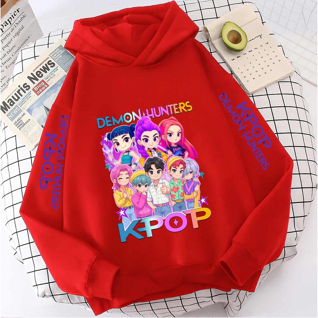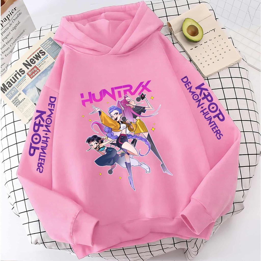 Детский розовый худи K-Pop Demon Hunter с мультяшным принтом