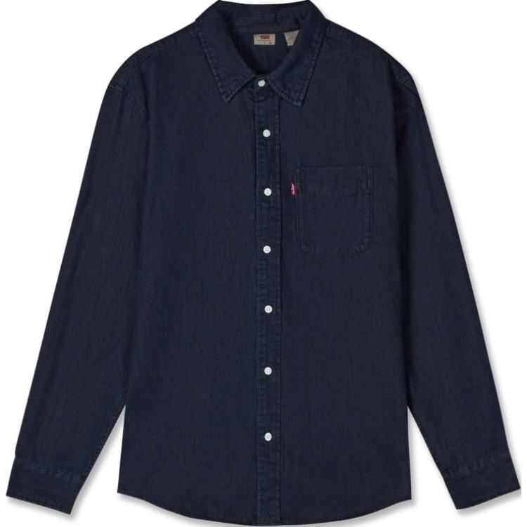 Levis Однотонное Простое Удобное Поло Джинсовая Рубашка с Длинным Рукавом Мужские рубашки Темно-синий 002HI-0000
