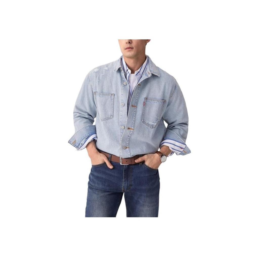 Levis Свободная Удобная Потертая Фланелевый Воротник Длинный Рукав Джинсовая Куртка Мужские куртки Синий 0017E-0001