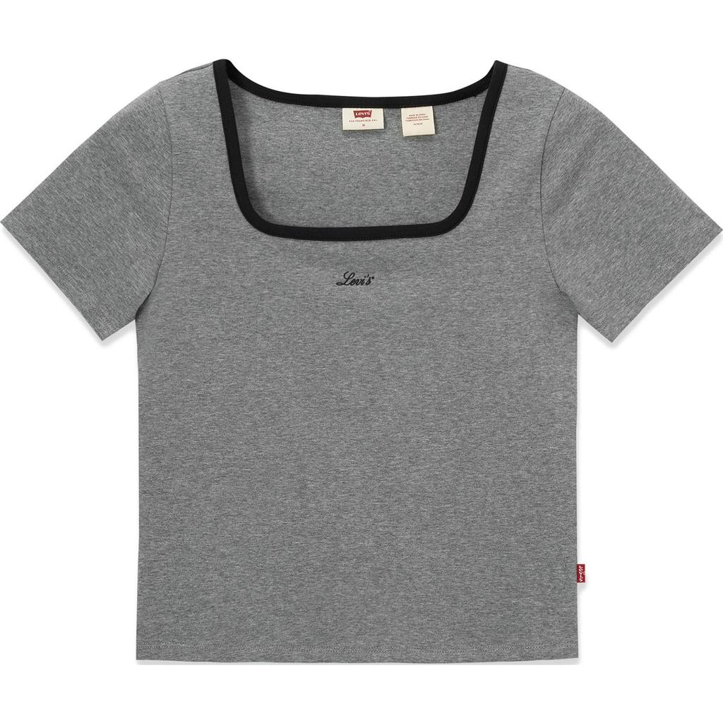 Коллекция Лето 2024 Levis Жаккардовая футболка с квадратным вырезом и короткими рукавами Женские футболки Серый 0019T-0002