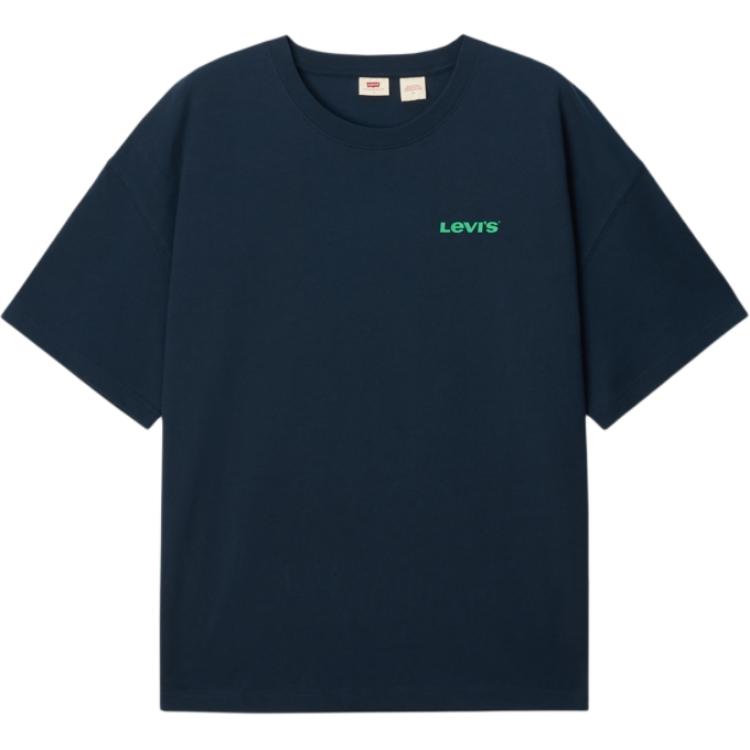 Levis Удобная Свободная Футболка с Принтом Букв Повседневная с Круглым Вырезом и Коротким Рукавом Мужские Футболки Темно-Синяя 002XG-0001