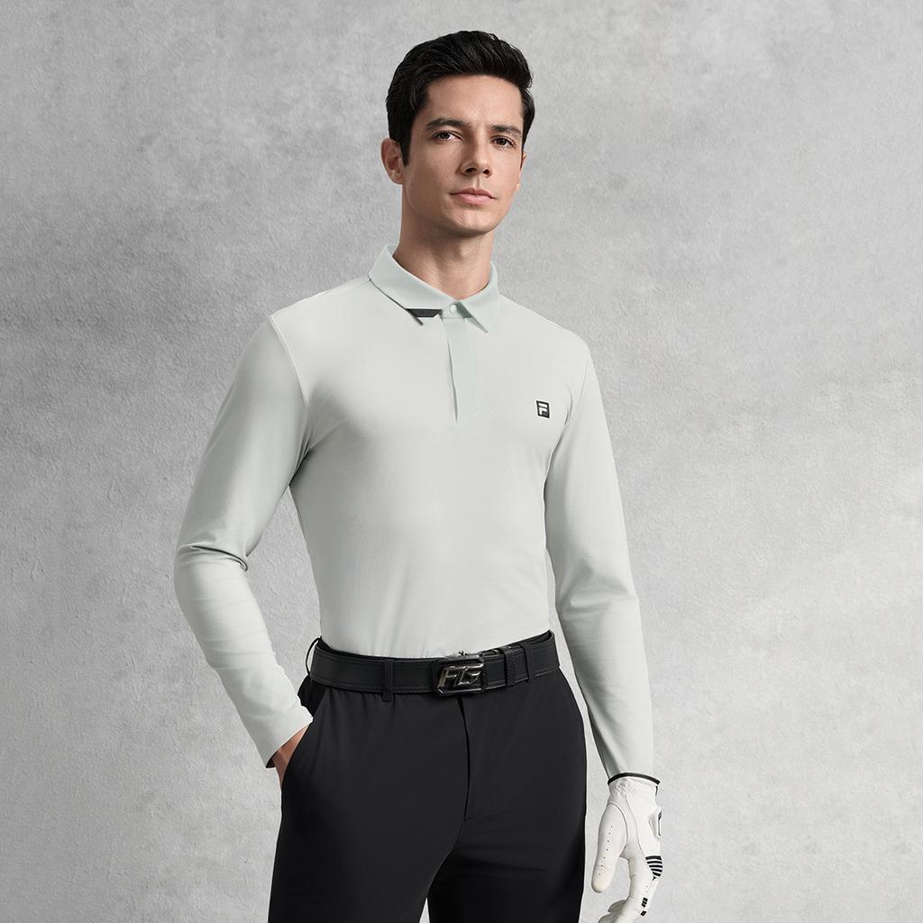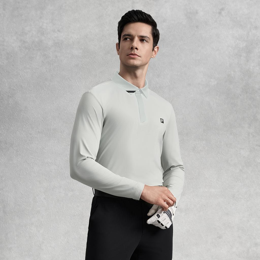 Fila Серия Golf Серия Athletics Удобная Универсальная Приятная к коже Простая Футболка-поло с длинным рукавом Мужские футболки-поло Голубино-серый A11M535201F-GY