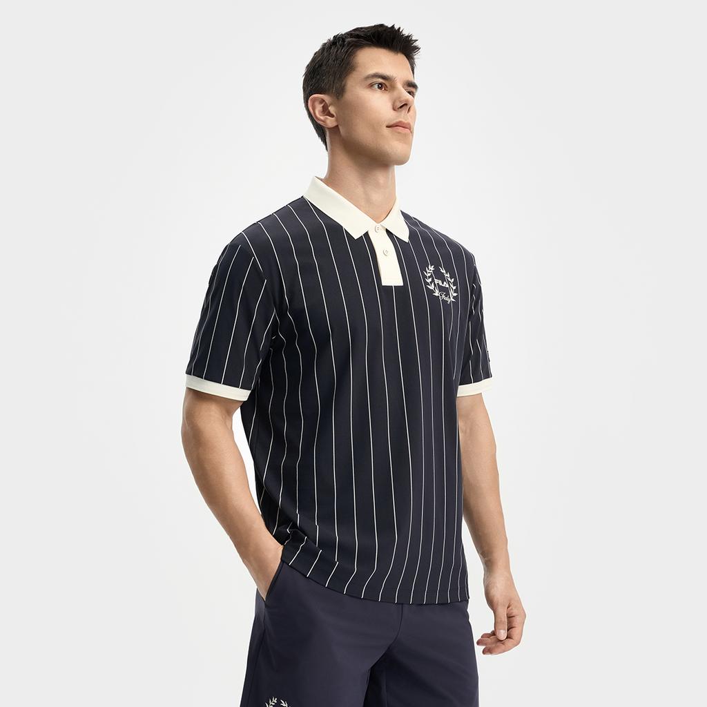 Fila Теннисная Атлетика Модная Полосатая Свободная Футболка-поло с Коротким Рукавом Мужские топы A11M533118F-ZA