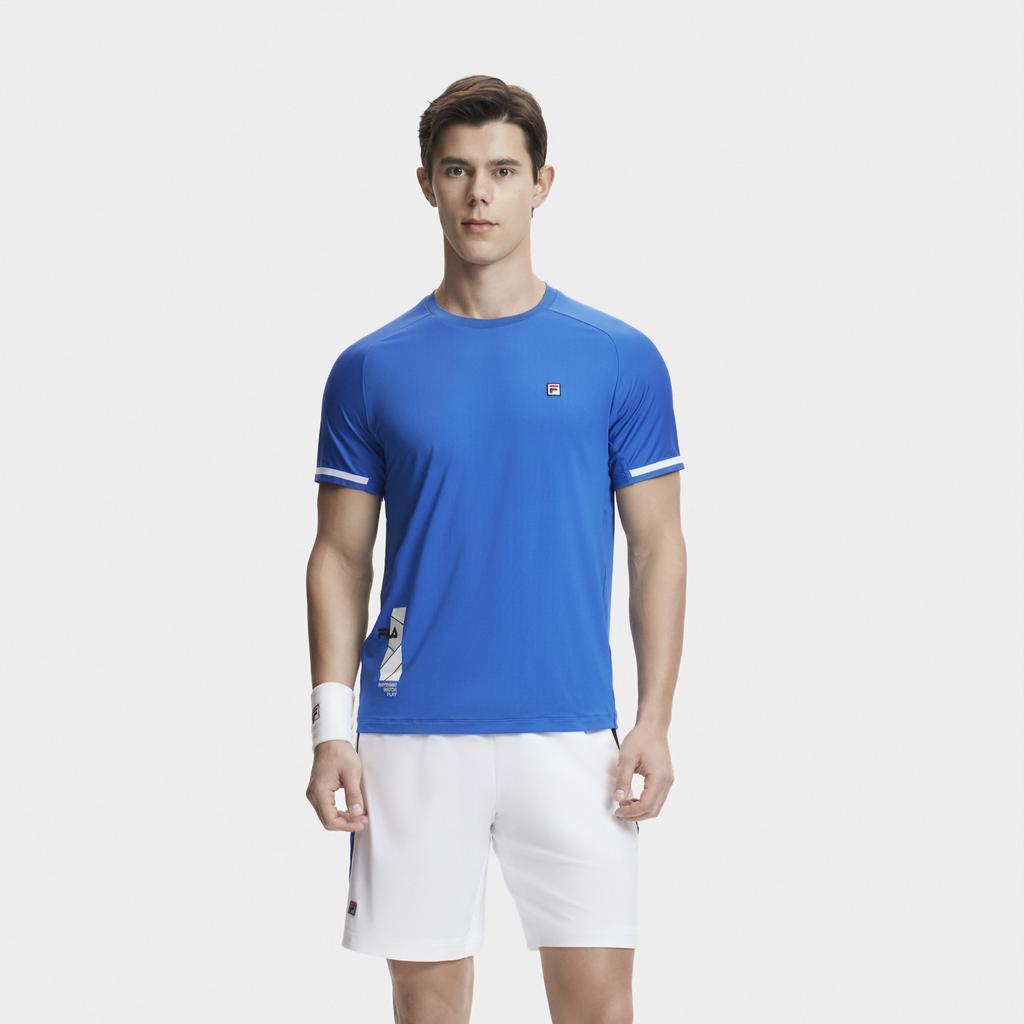 Fila Теннисная серия Однотонная футболка с принтом Круглый вырез Короткий рукав Мужские топы Олимпийский синий A11M423114FBU