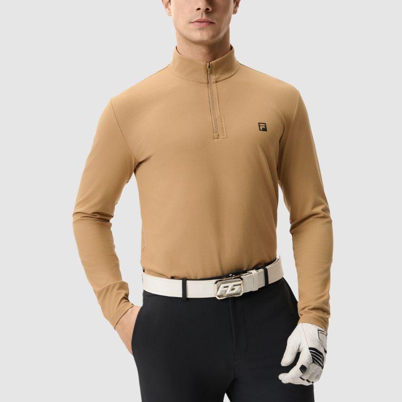 Fila Флисовая футболка с длинным рукавом, мягкая эластичная, мужская, топы, оранжево-желтая, A11M515205F-BG