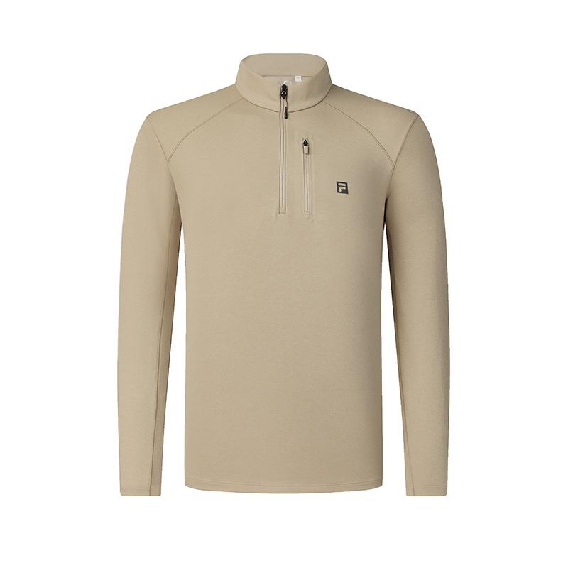 Fila Повседневная футболка с воротником-стойкой, на молнии до середины, с длинным рукавом и карманом, мужская, топы, каштановая, A11M517202FDK