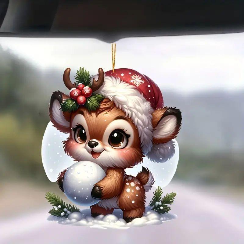 Это украшение салона автомобиля имеет милый дизайн с оленем, изготовлено из прочного акрилового материала.. Его легкая конструкция обеспечивает легкое крепление к зеркалу заднего вида, добавляя праздничное очарование.. Идеально подходит для праздничного украшения автомобиля, его легко протирать влажной тканью для ухода.