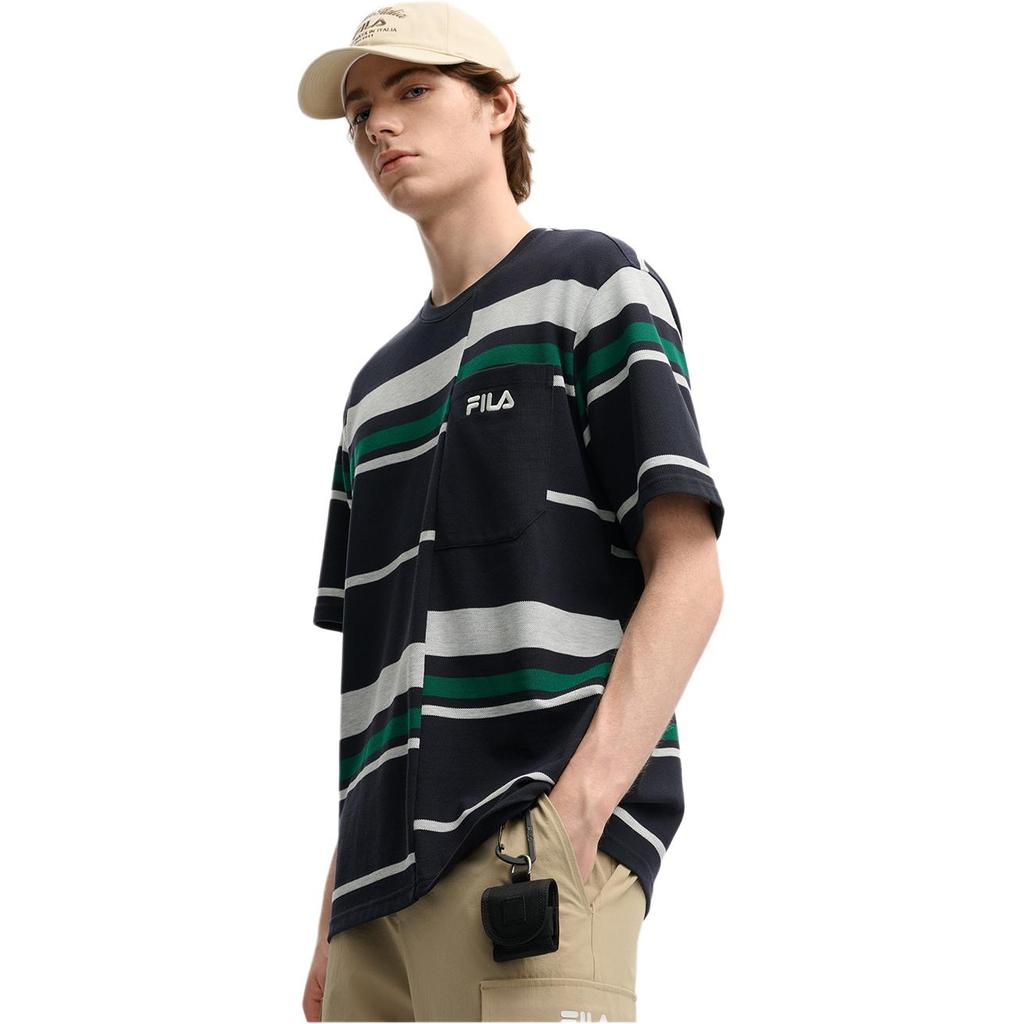 Fila Оригинальная повседневная полосатая футболка-пуловер с коротким рукавом Мужские топы F11M539110F-NV