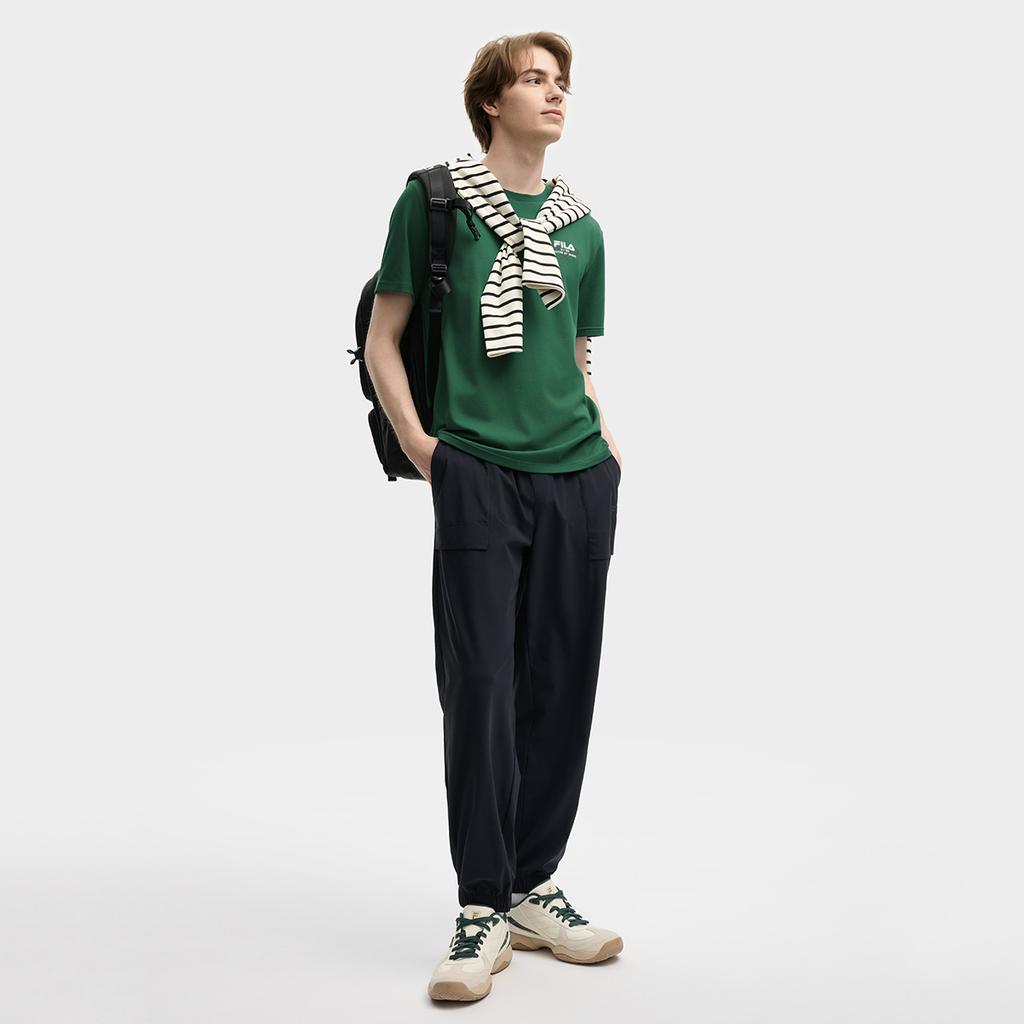 Fila Оригинальная футболка с принтом логотипа сзади, модная, трендовая, удобная, повседневная, с коротким рукавом, мужские топы F11M539106F-GN