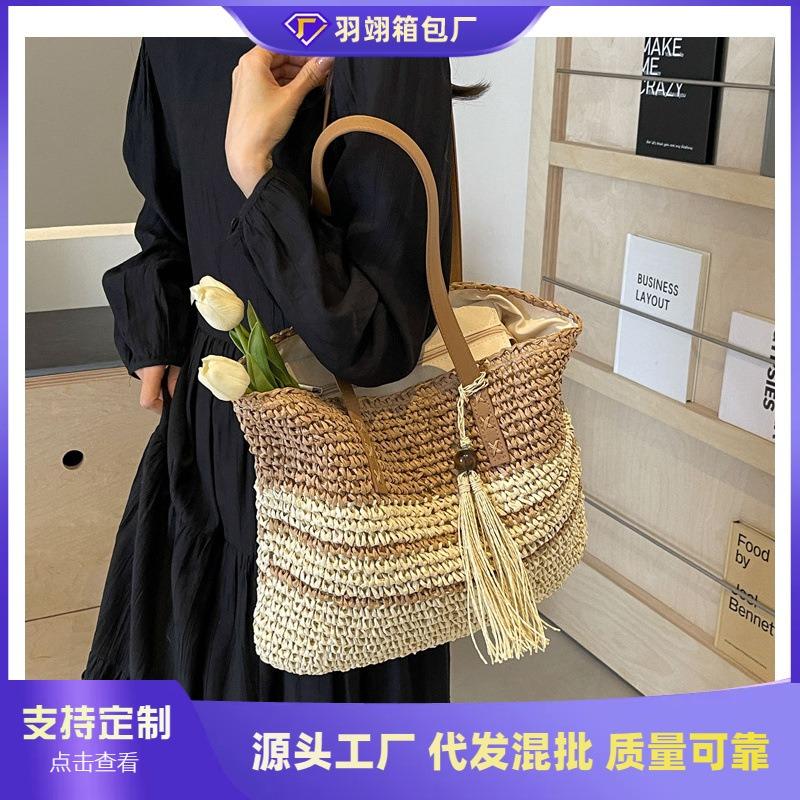 Плетеная сумка из соломы большой вместимости новая плетеная сумка сумка на плечо подмышку для отдыха на море отпуск пляжная сумка
