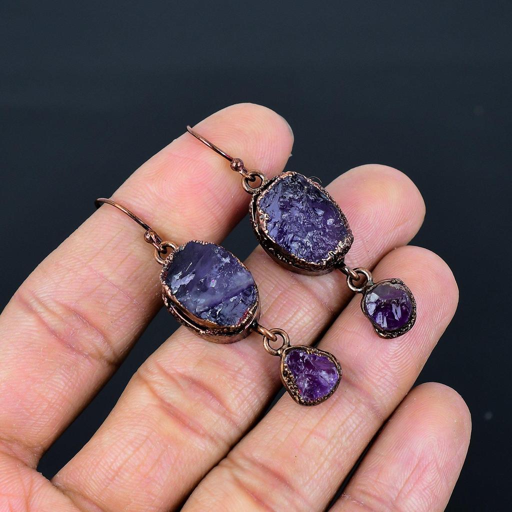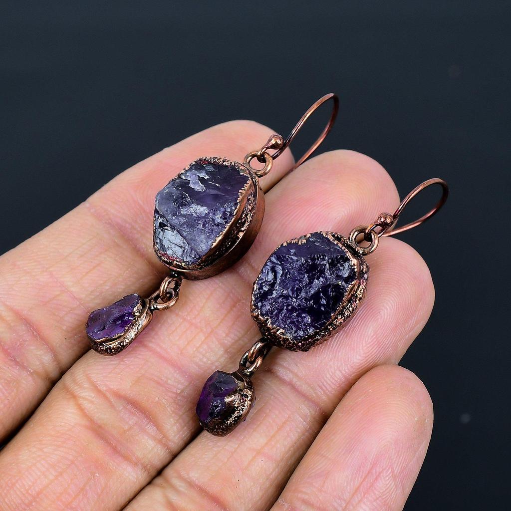 Серьги с аметистом, Ювелирные изделия из драгоценных камней, Медные гальванопластические серьги с серебряным покрытием, Подарок для женщин, Серьги ручной работы