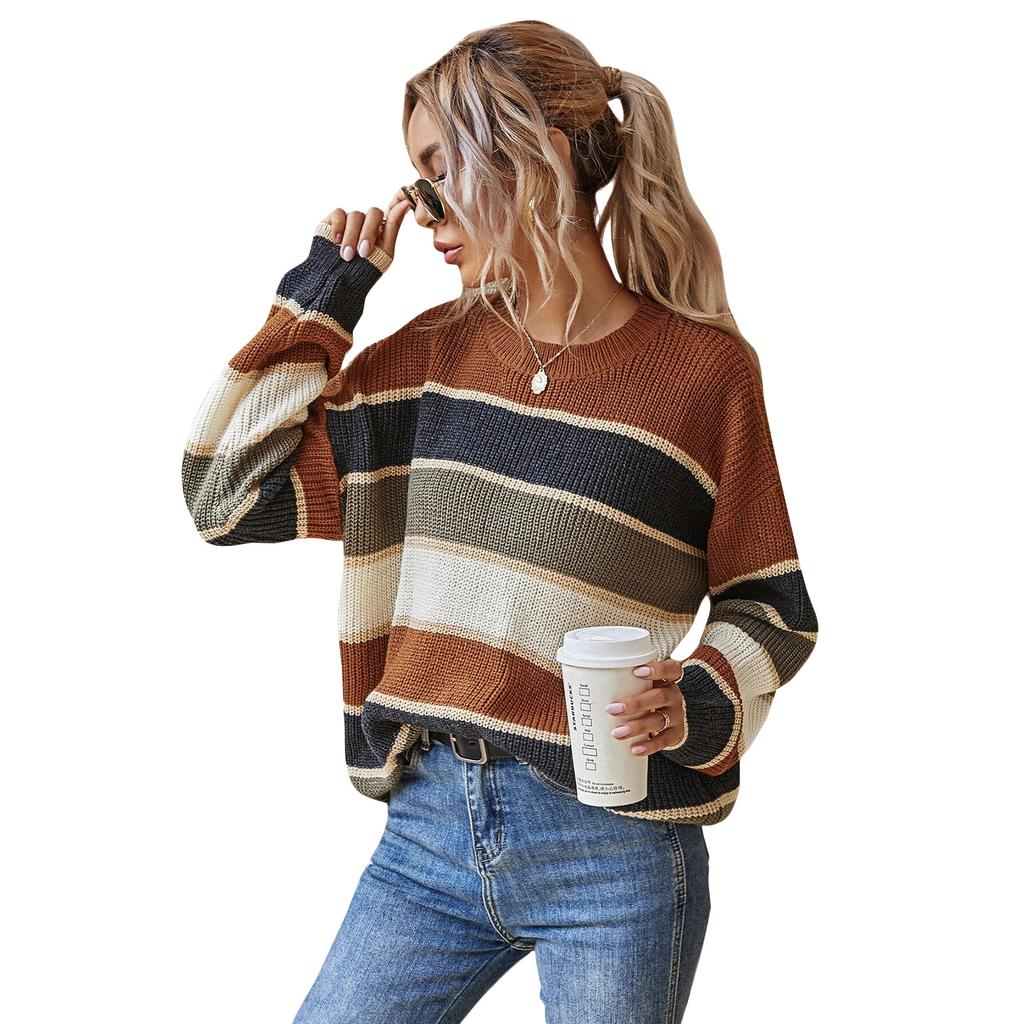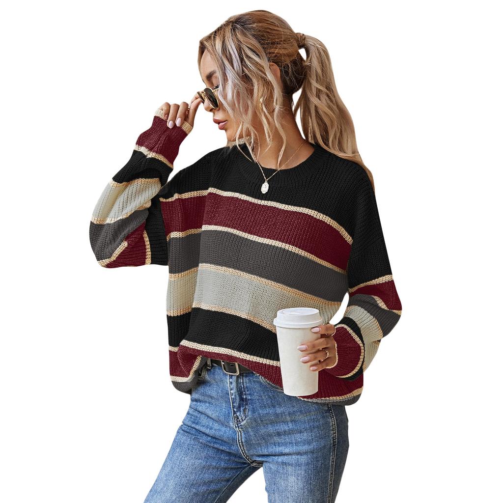 Женский модный свитер с круглым вырезом, ленивый свободный классический полосатый с длинными рукавами