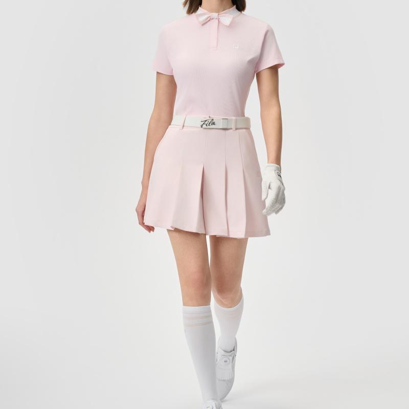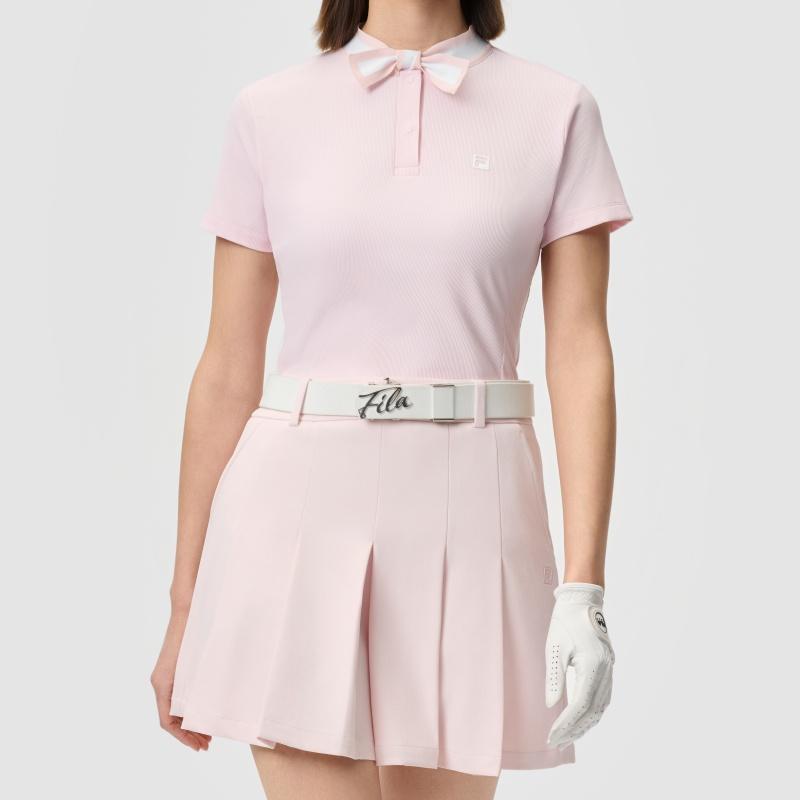 Fila Серия Гольф Простая однотонная удобная приталенная футболка-поло с коротким рукавом женская розовая A11W525125F-PK