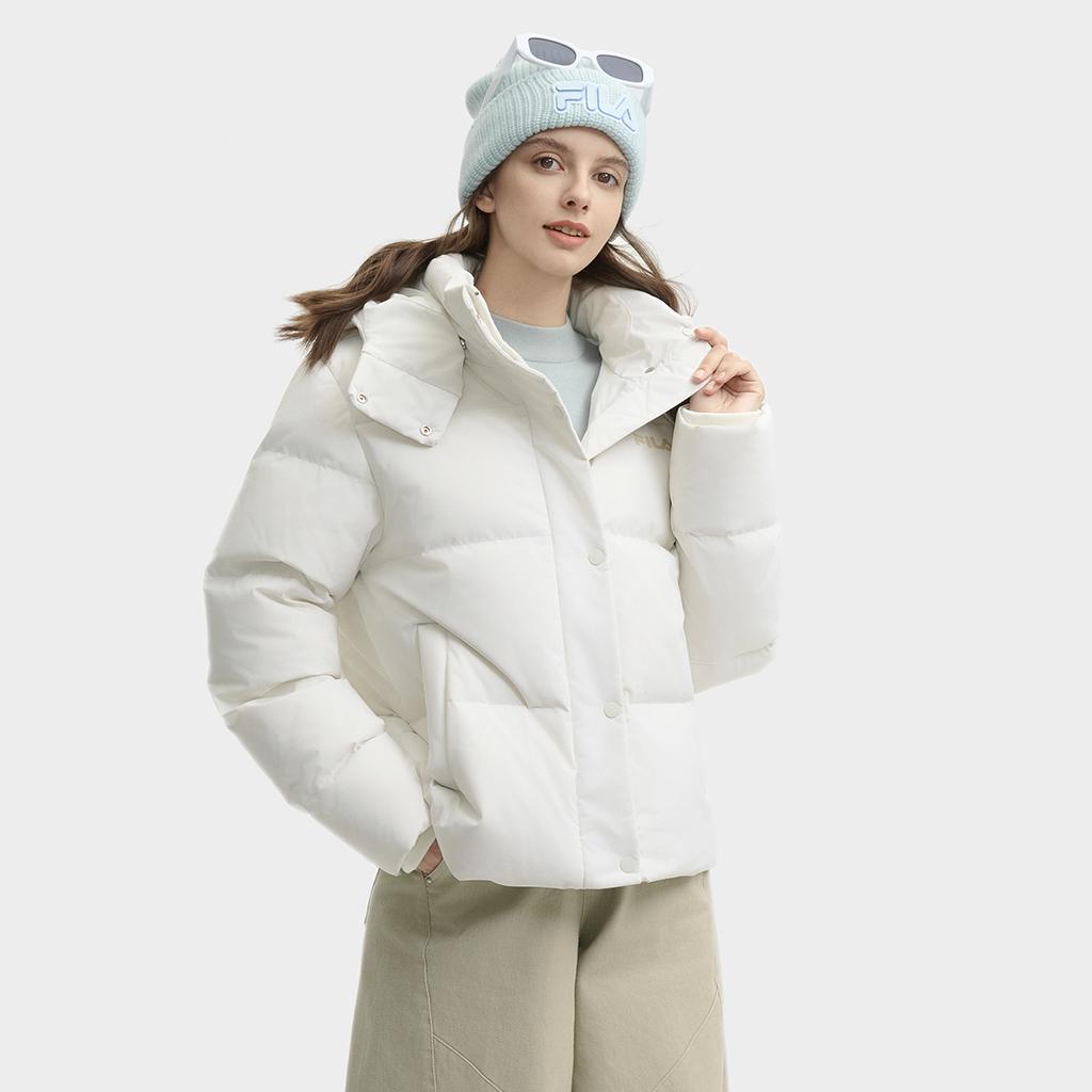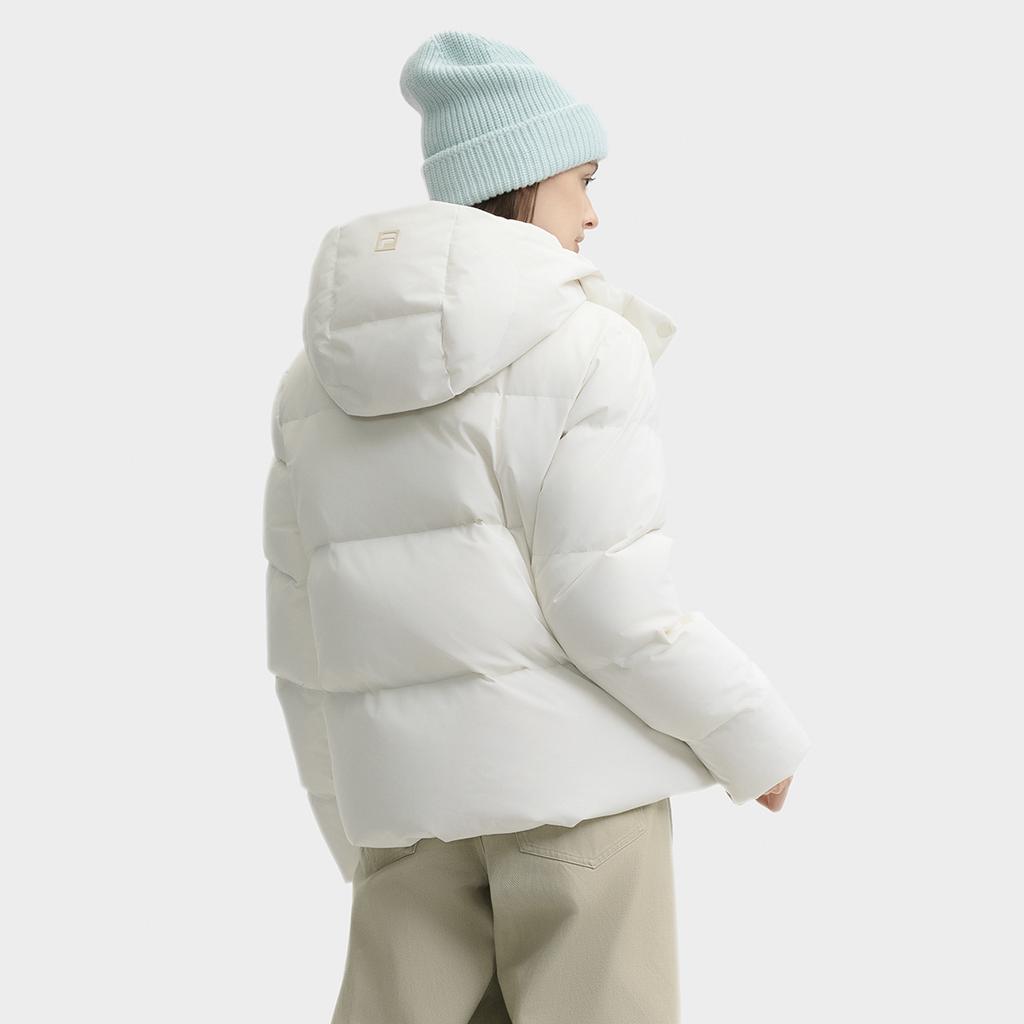 Fila Однотонная Простая Теплая Удобная Повседневная Куртка-пуховик с капюшоном и длинными рукавами Женская Верхняя одежда Ванильно-серая F51W449902FGY