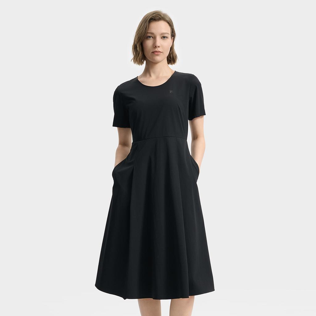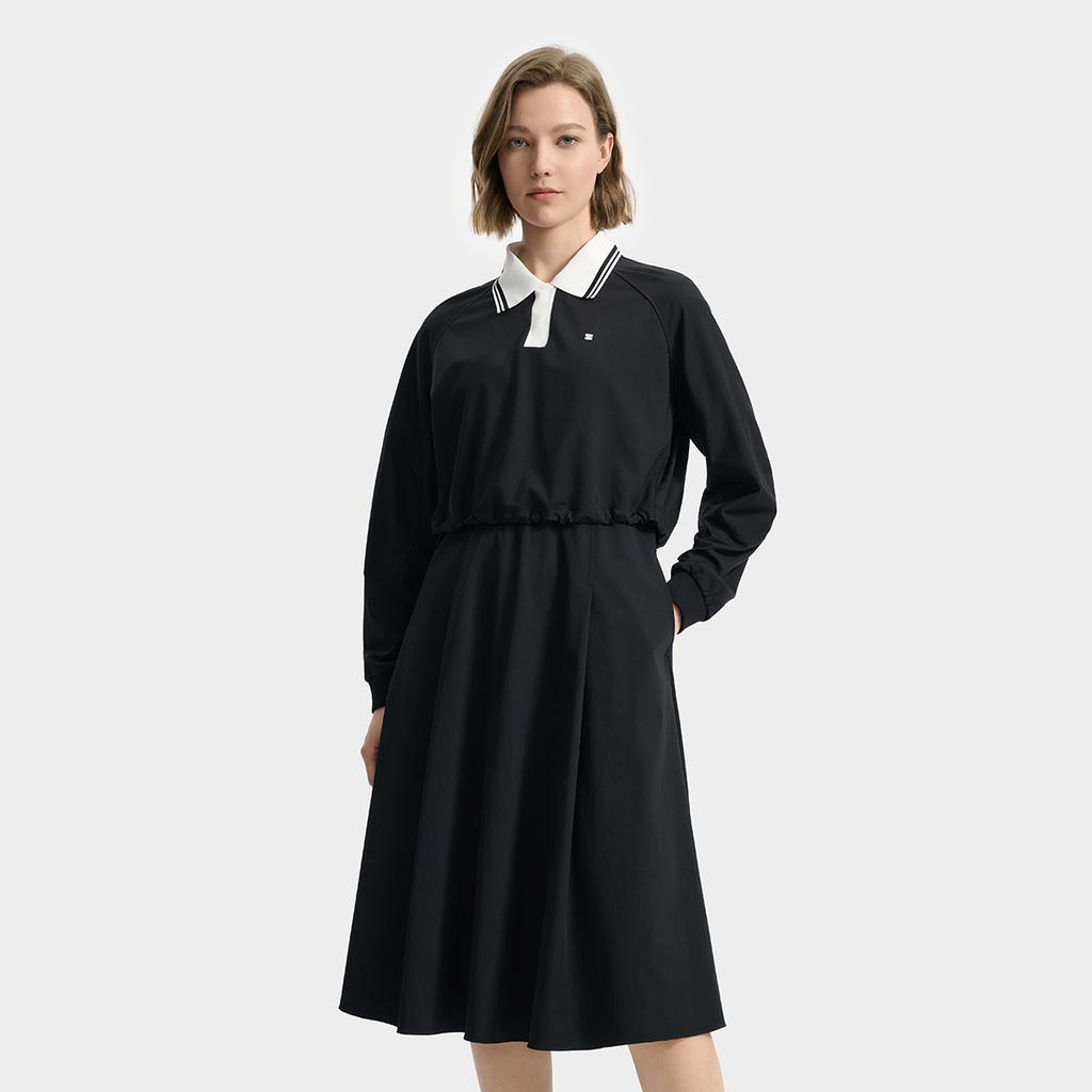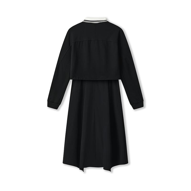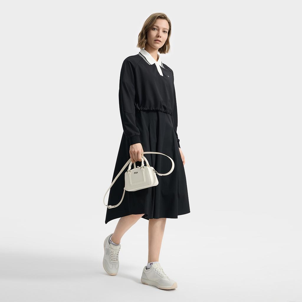Fila Белое Удобное Универсальное Платье в Литературном Стиле Съемное Двухпредметное с Длинным Рукавом Женские Платья F11W533310F-BK