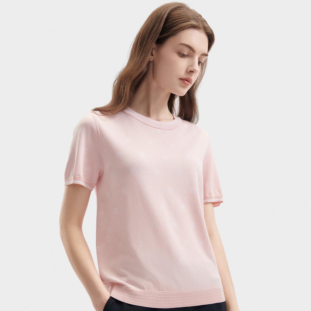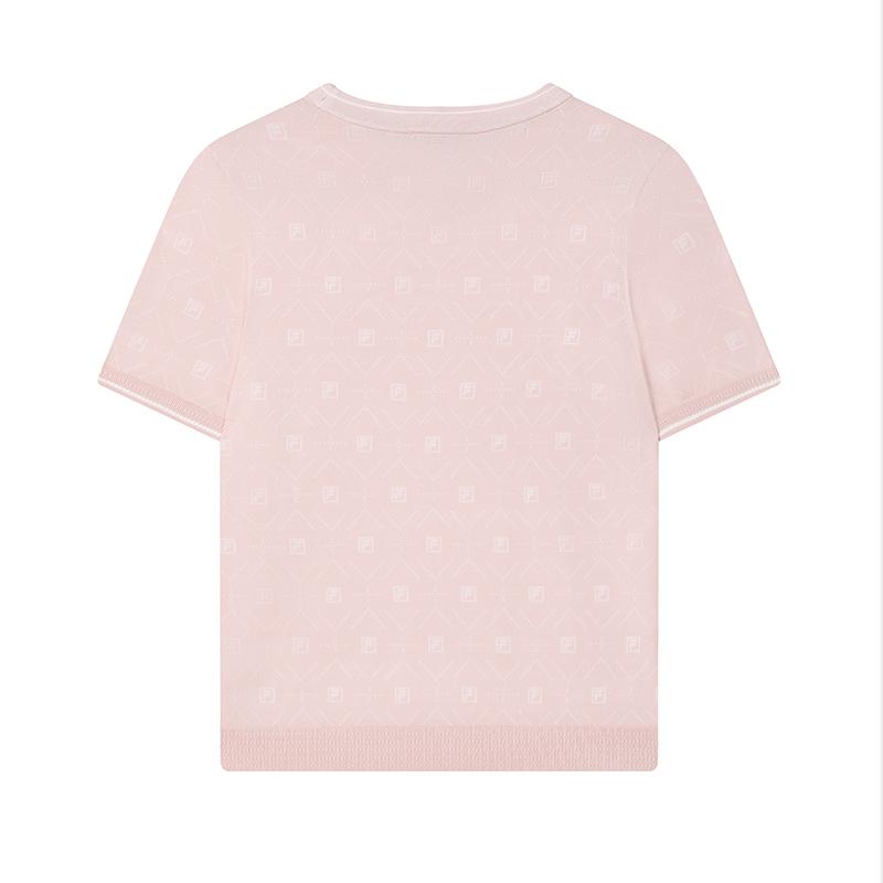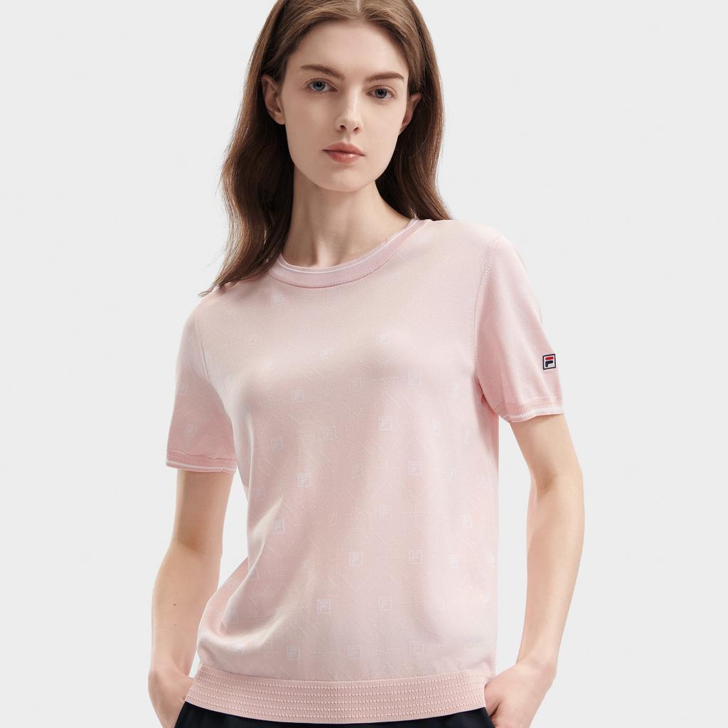 Fila Однотонный принт по всей поверхности Повседневный трикотажный топ с круглым вырезом и короткими рукавами Женские топы Светло-вишнево-розовый F11W421407FPK