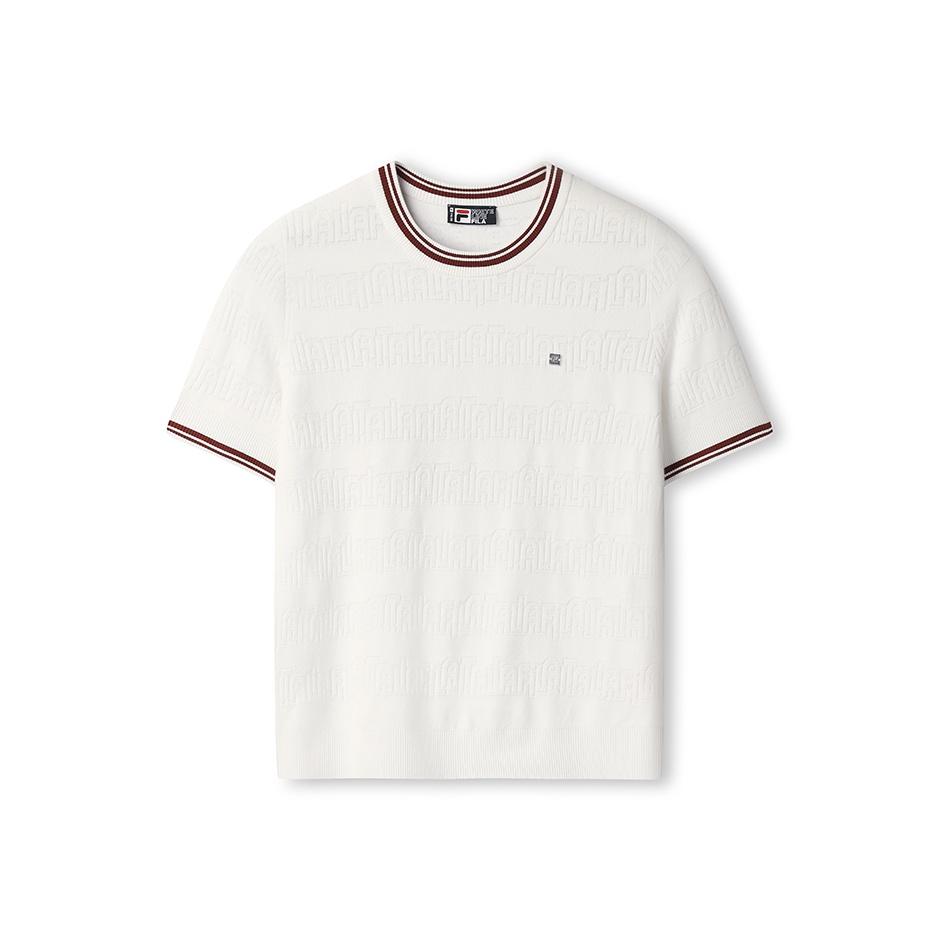 Fila Белый Модный Простой Текстурный Повседневный Универсальный Удобный Пуловер с Коротким Рукавом Вязаный Топ Женские топы F11W533403F-WT