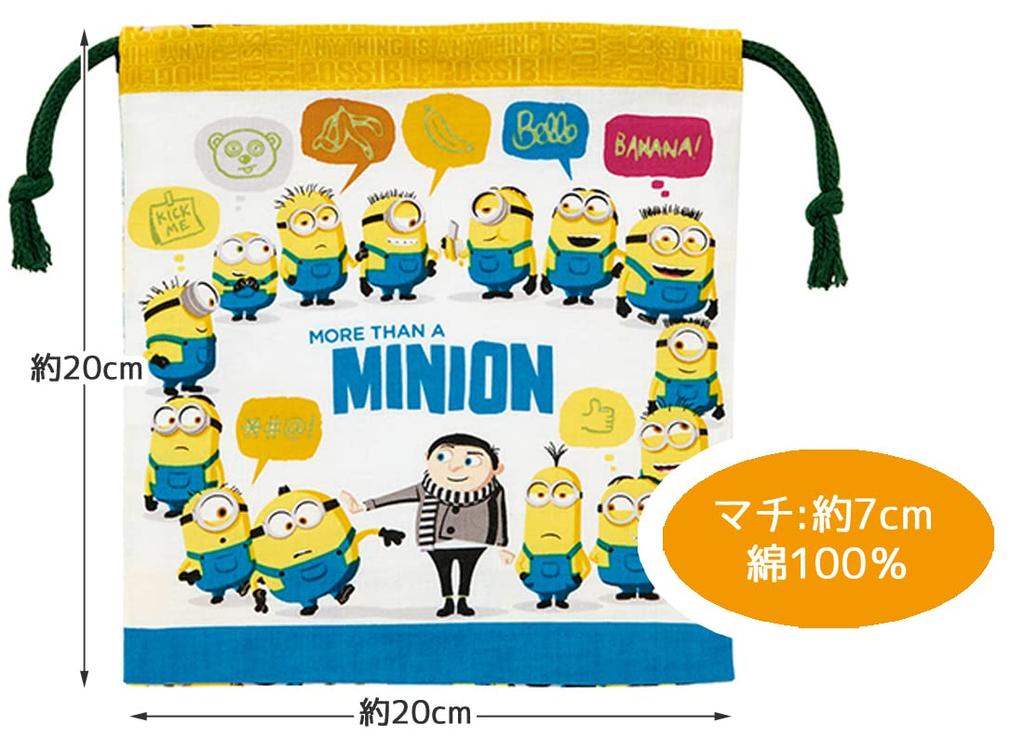 Сумка-мешок на шнурке для бенто Skater с набором Миньонов, с ластовицей, 2, Fever, Япония, KB64WN-A