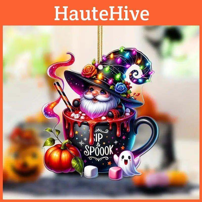 Santa Halloween Candy Claus Design Acrylic Flat Surface Pendant For Car Decor