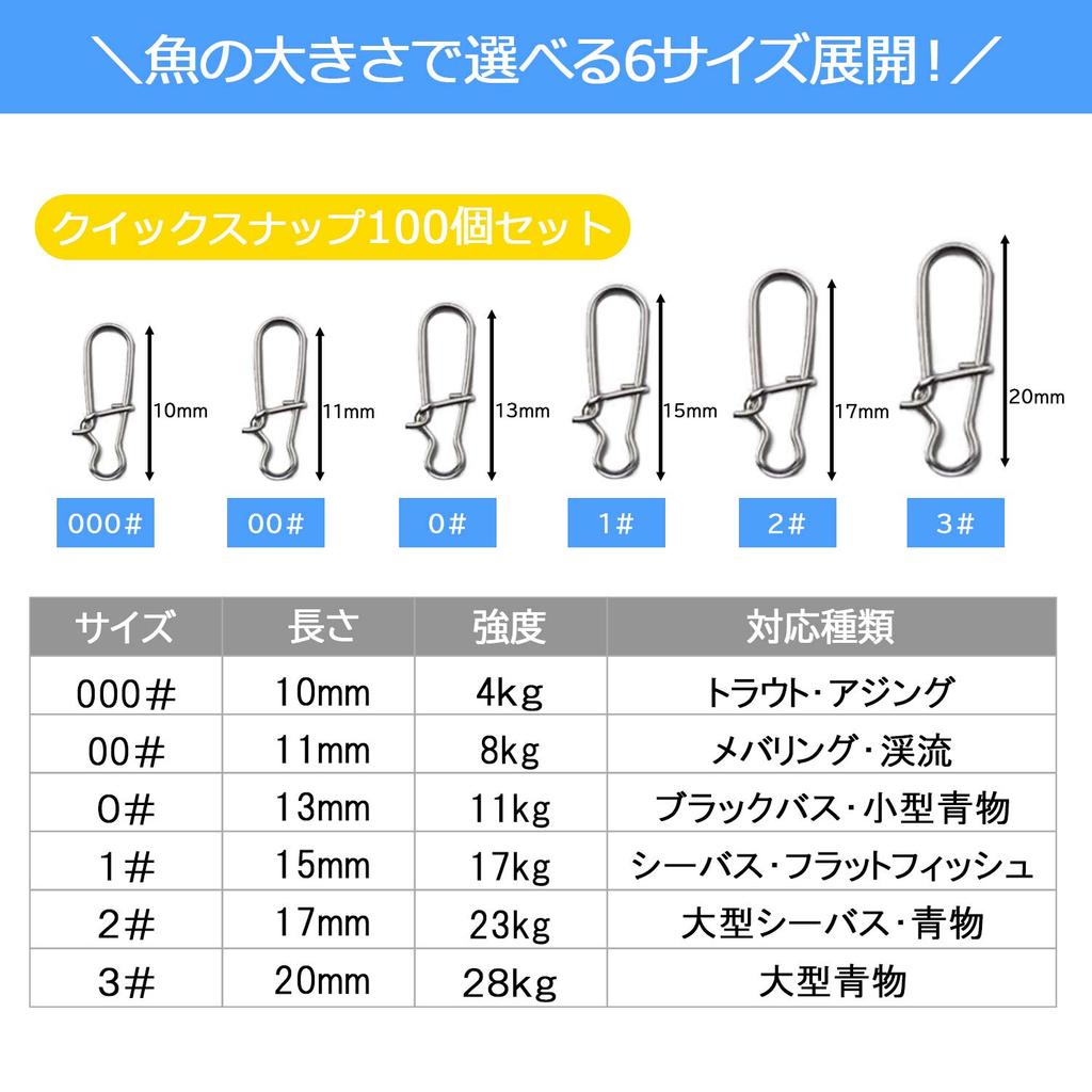 Дикие Сцены Быстрые Снимки 4 Идеально для Легкого Берега и Смены Приманок 15 мм 17 кг для Морского Окуня и (Набор из 100 штук, Размеры) Игра, Джиггинг, (1# / Камбала)