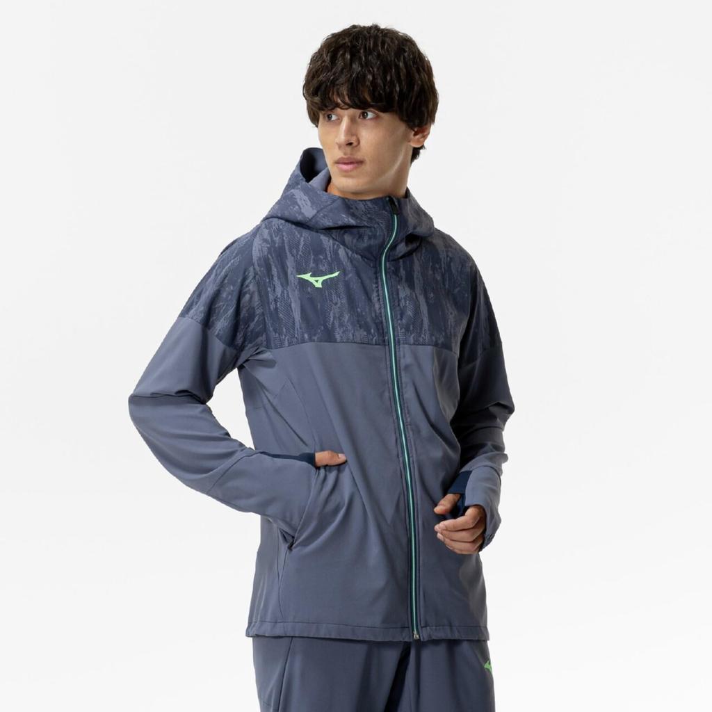 Mizuno Тренировочная толстовка с капюшоном из эластичной ткани Stretch Indigo, Одежда, Джерси, Спорт, 32MCC002,
