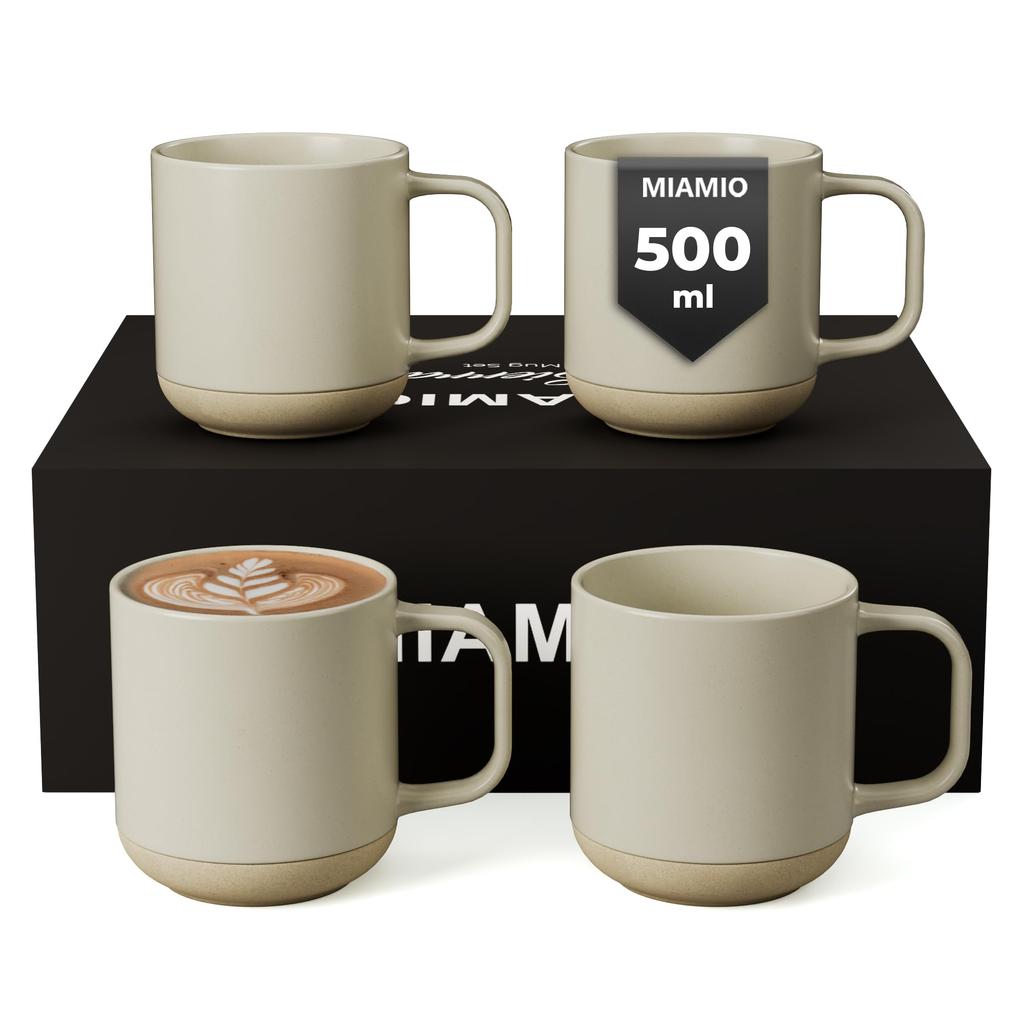 Набор кофейных кружек MIAMIO из 4 керамических чашек для латте и эспрессо, можно мыть в посудомоечной машине и использовать в микроволновой печи, коллекция Sierra 4 - / (500 мл), Капучино, Макиато,