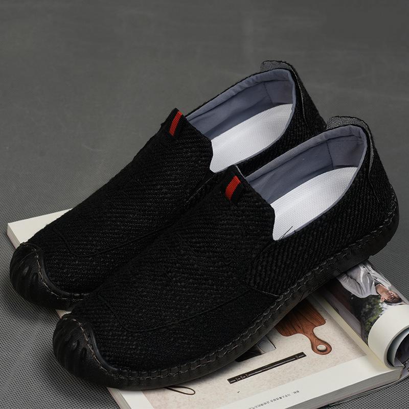 Туфли из старой пекинской ткани, весенние льняные мужские повседневные туфли, легкие подошвы из говяжьих сухожилий, для вождения и ходьбы онлайн, дышащая мужская обувь