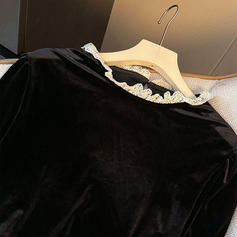 Бархатная рубашка из французского кружева в стиле пэчворк, имитирующая двойку, для женщин, осенняя, повседневная, с длинным рукавом, модная, элегантная блузка
